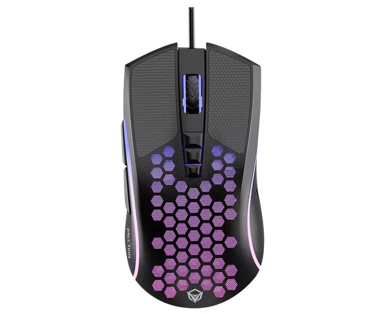 Мишка Meetion GM15 USB Black (MT-GM015-A) - це ідеальний аксесуар для геймерів, який поєднує в собі ергономічний дизайн, високу точність та багатофункціональність. З легким корпусом у стилі honeycomb, ця мишка пропонує не лише стильний зовнішній вигляд, але й мінімальне навантаження на руку завдяки вазі у 122 г, що робить її ідеальною для тривалих ігрових сесій.