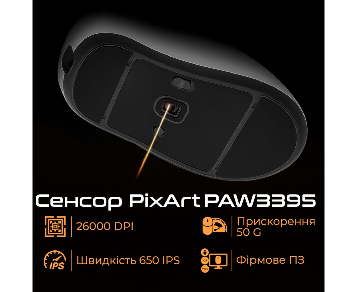 Сенсор PixArt PAW3395: ER21 оснащена високопродуктивним оптичним сенсором PixArt PAW3395, що підтримує до 26 000 DPI, швидкість 650 IPS та прискорення до 50 g.