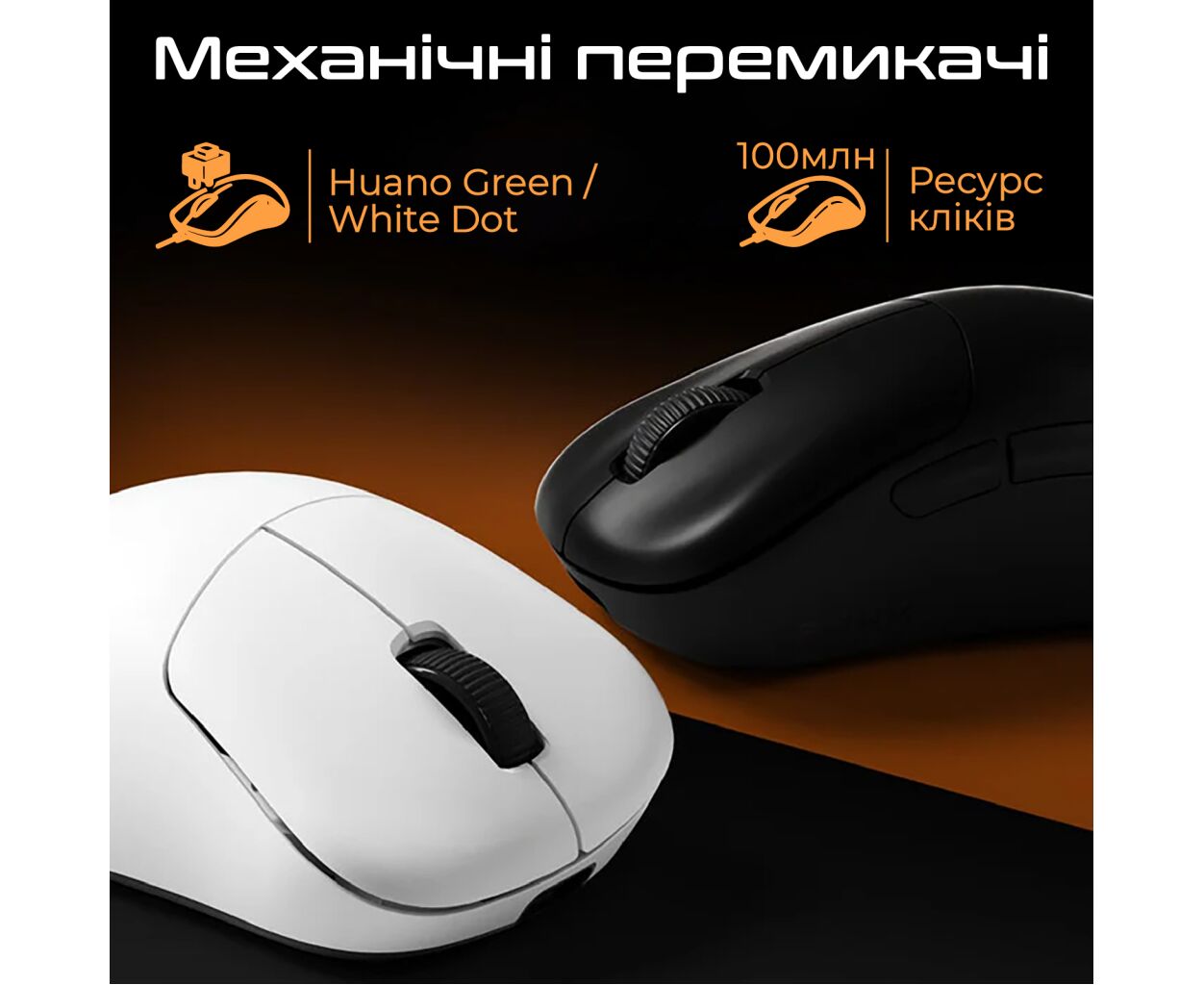 RAWM ER21 створена для професійних геймерів, поєднуючи ультра-точний сенсор PixArt PAW3395 із роздільною здатністю до 26 000 DPI та надлегку вагу лише 53 г. Завдяки чіпу PANCHIP PAN1080, підтримці частоти опитування до 8000 Гц і перемикачам Huano Green/White Dot з ресурсом в 100 млн кліків, вона забезпечує блискавичний відгук і надійність у найдинамічніших іграх.