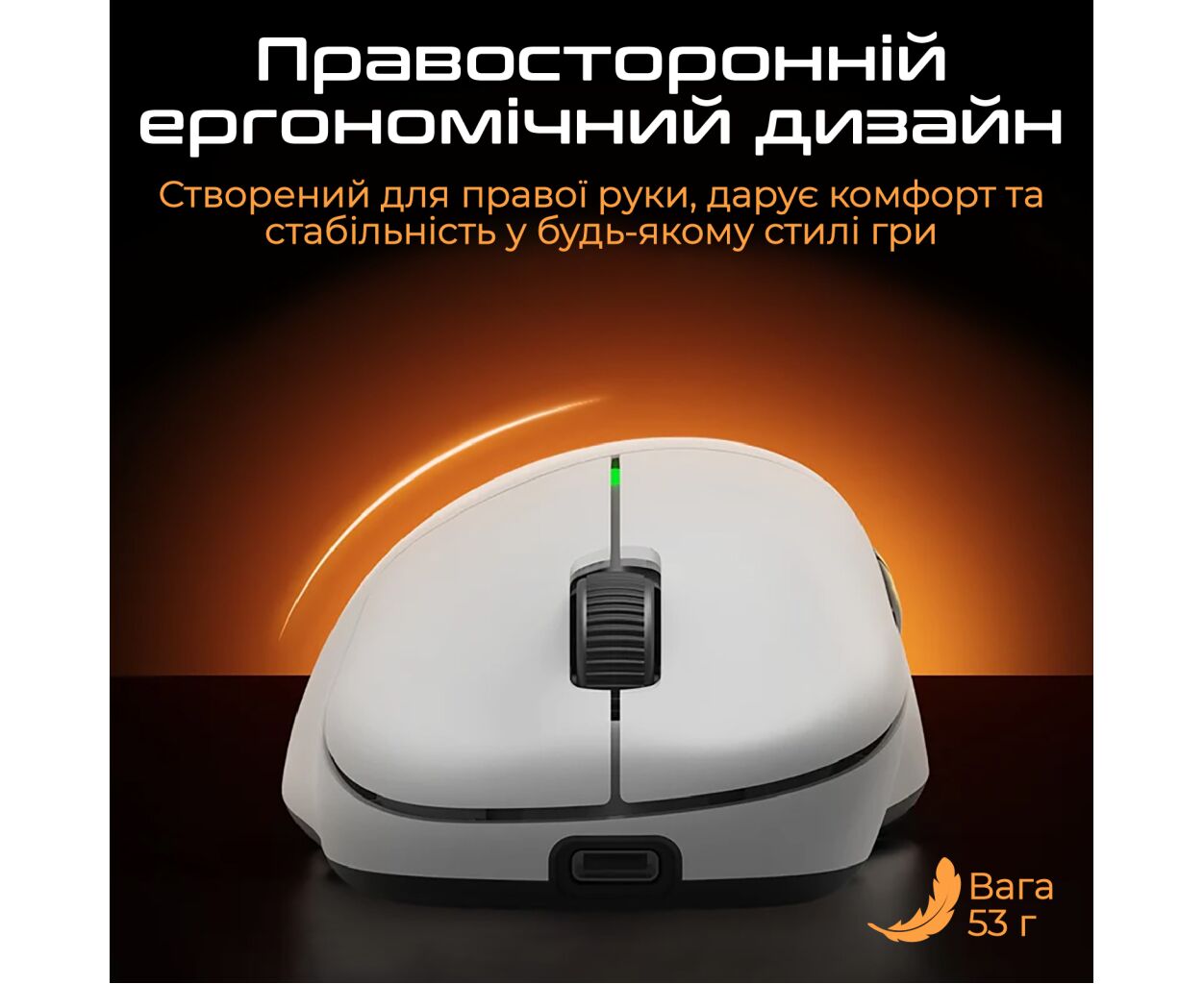 Правосторонній ергономічний дизайн: Спеціально створений для правої руки, він повторює природні лінії долоні, дарує зручність та стабільний контроль у будь-якому стилі гри.