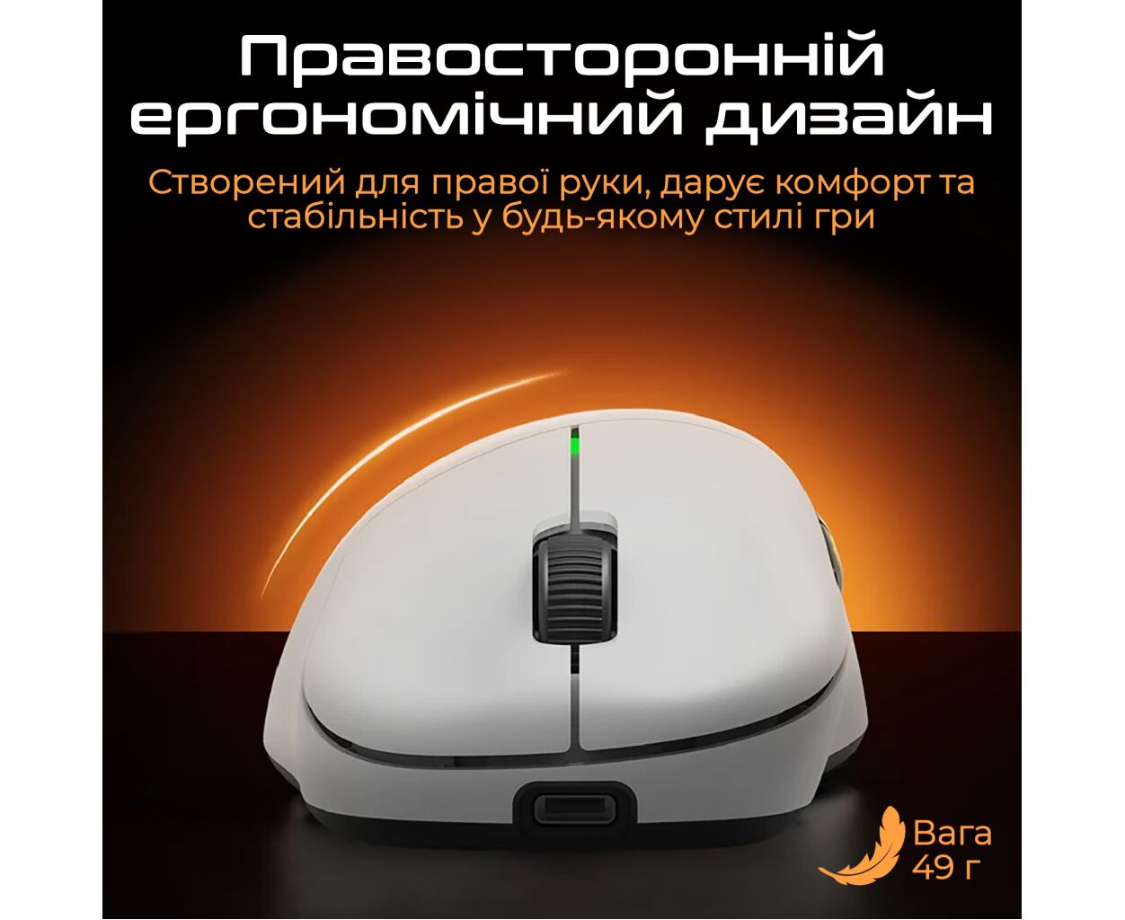 RAWM ER21PRO - ультралегка ігрова мишка вагою всього 49 г, оснащена топовим сенсором PixArt PAW3950 з роздільною здатністю до 30 000 DPI та чіпом Nordic 52840 для стабільного й швидкого бездротового зв’язку. Оптичні перемикачі RAESHA з відгуком усього 0.1 мс та ресурсом 100 млн кліків у поєднанні з частотою опитування до 8000 Гц забезпечують миттєву реакцію та максимальну точність у грі. Це ідеальний вибір для геймерів, яким потрібна швидкість, комфорт і надійність на кіберспортивному рівні.