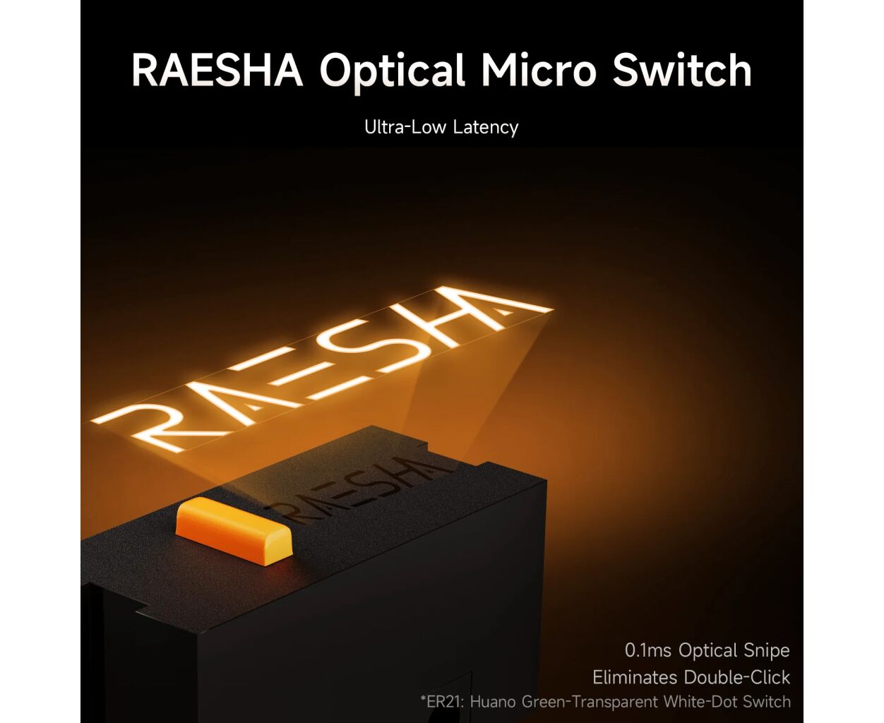 RAWM ER21PRO - ультралегка ігрова мишка вагою всього 49 г, оснащена топовим сенсором PixArt PAW3950 з роздільною здатністю до 30 000 DPI та чіпом Nordic 52840 для стабільного й швидкого бездротового зв’язку. Оптичні перемикачі RAESHA з відгуком усього 0.1 мс та ресурсом 100 млн кліків у поєднанні з частотою опитування до 8000 Гц забезпечують миттєву реакцію та максимальну точність у грі. Це ідеальний вибір для геймерів, яким потрібна швидкість, комфорт і надійність на кіберспортивному рівні.