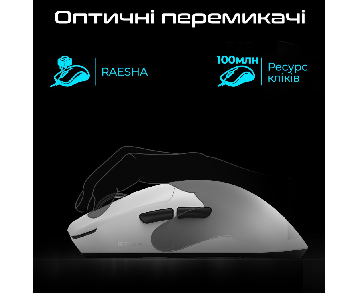 Оптичні перемикачі RAESHA: з ресурсом в 100 млн натискань, допомагають уникнути «подвійних кліків» і гарантують ультранизьку затримку відгуку - всього 0.1 мс.