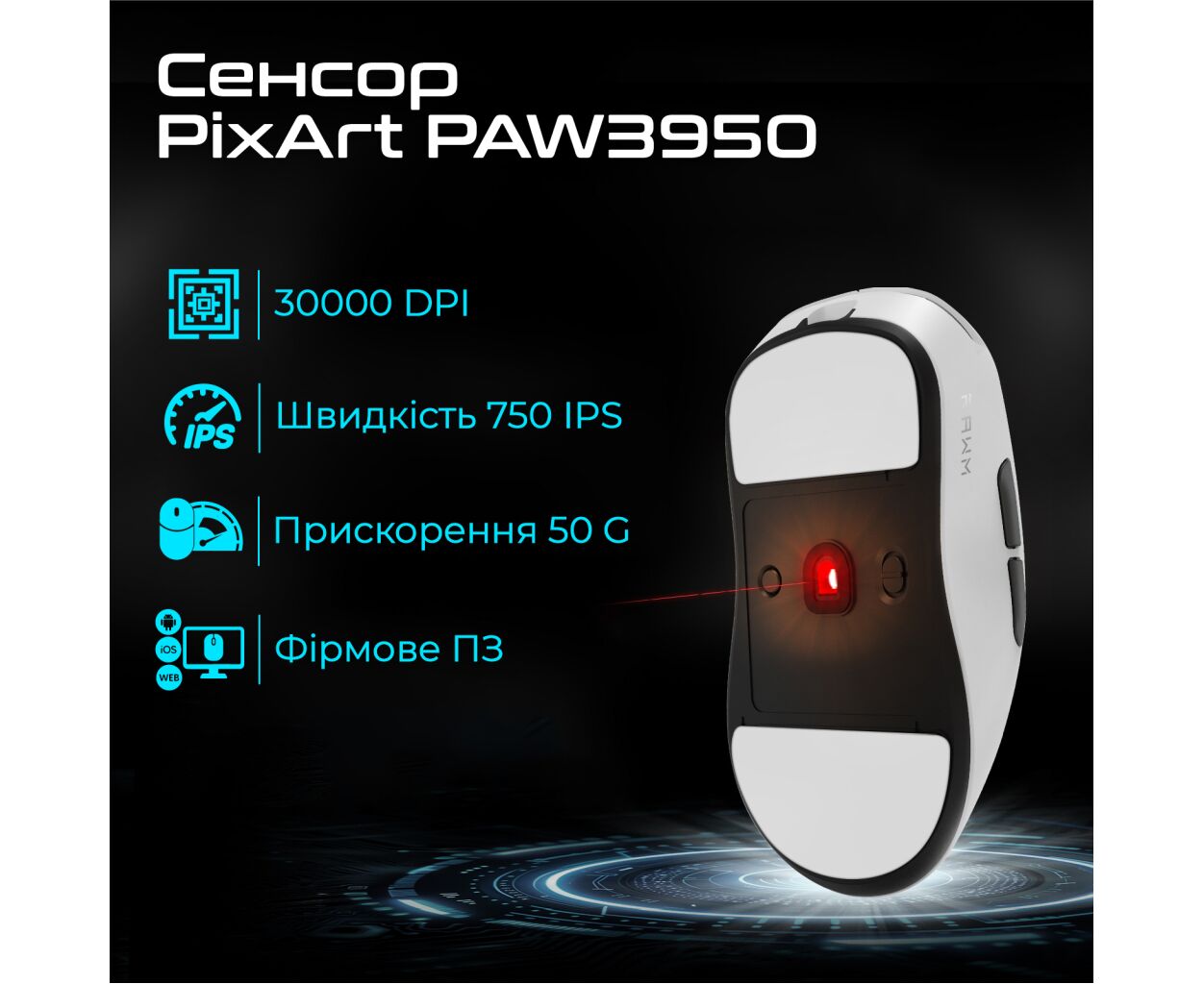 Сенсор PixArt PAW3950: ES21PRO оснащена флагманським оптичним сенсором PixArt PAW3950, що підтримує до 30 000 DPI, швидкість 750 IPS та прискорення до 50 g.