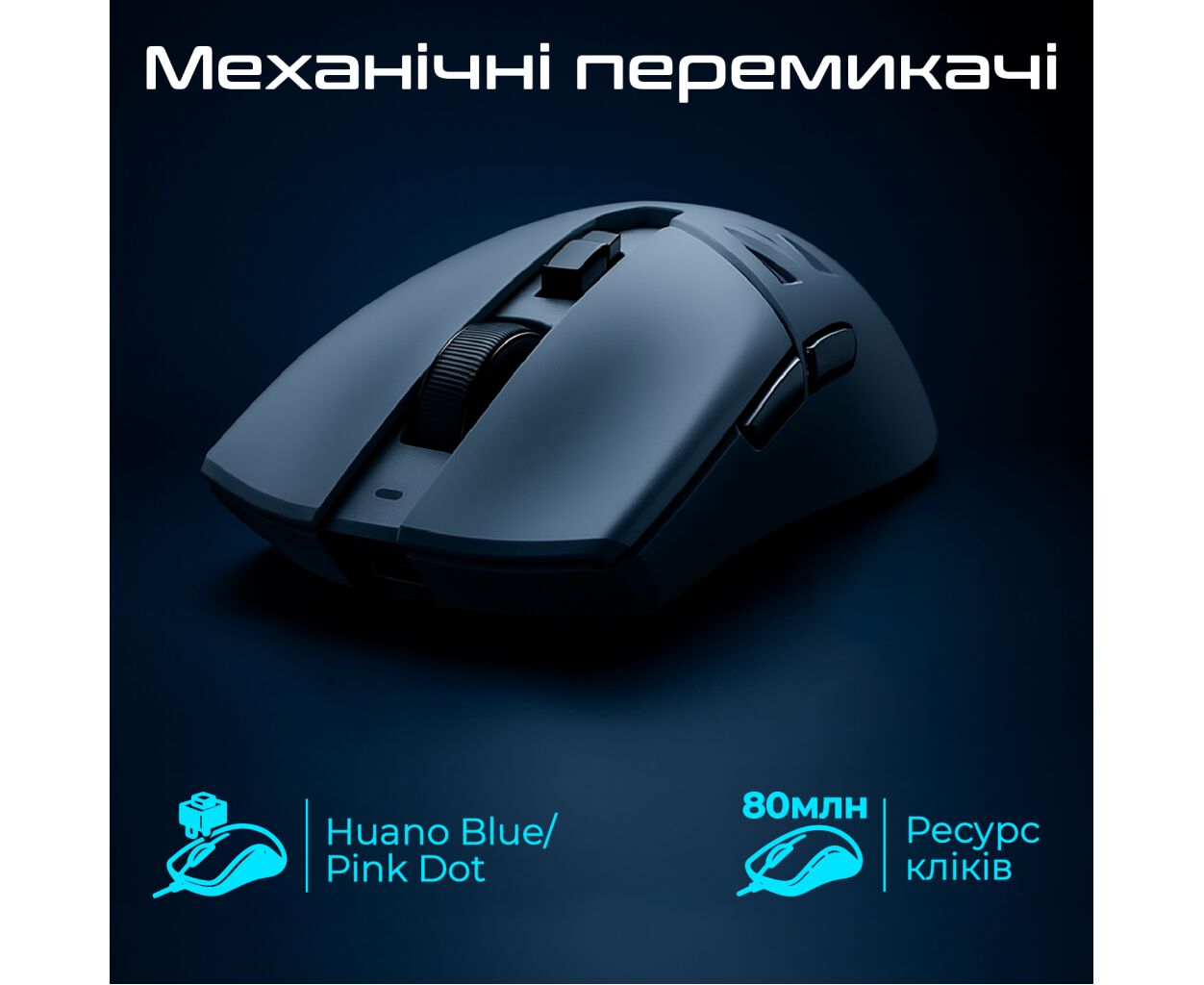 Механічні перемикачі Huano Blue/Pink Dot: Надійні механічні перемикачі з ресурсом в 80 млн натискань, і вираженим кліком, які підходять для геймерів, що люблять класичне «механічне» відчуття.