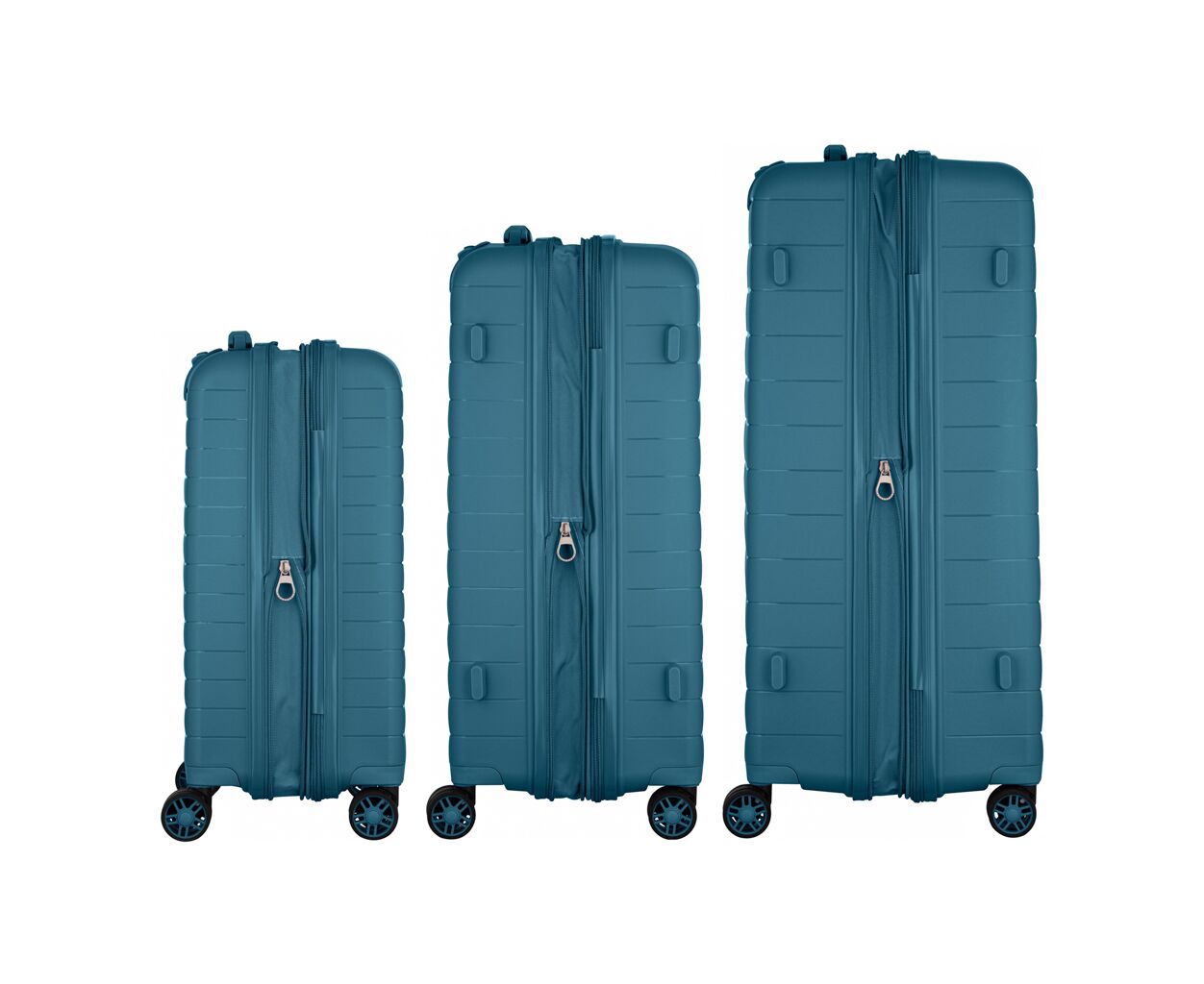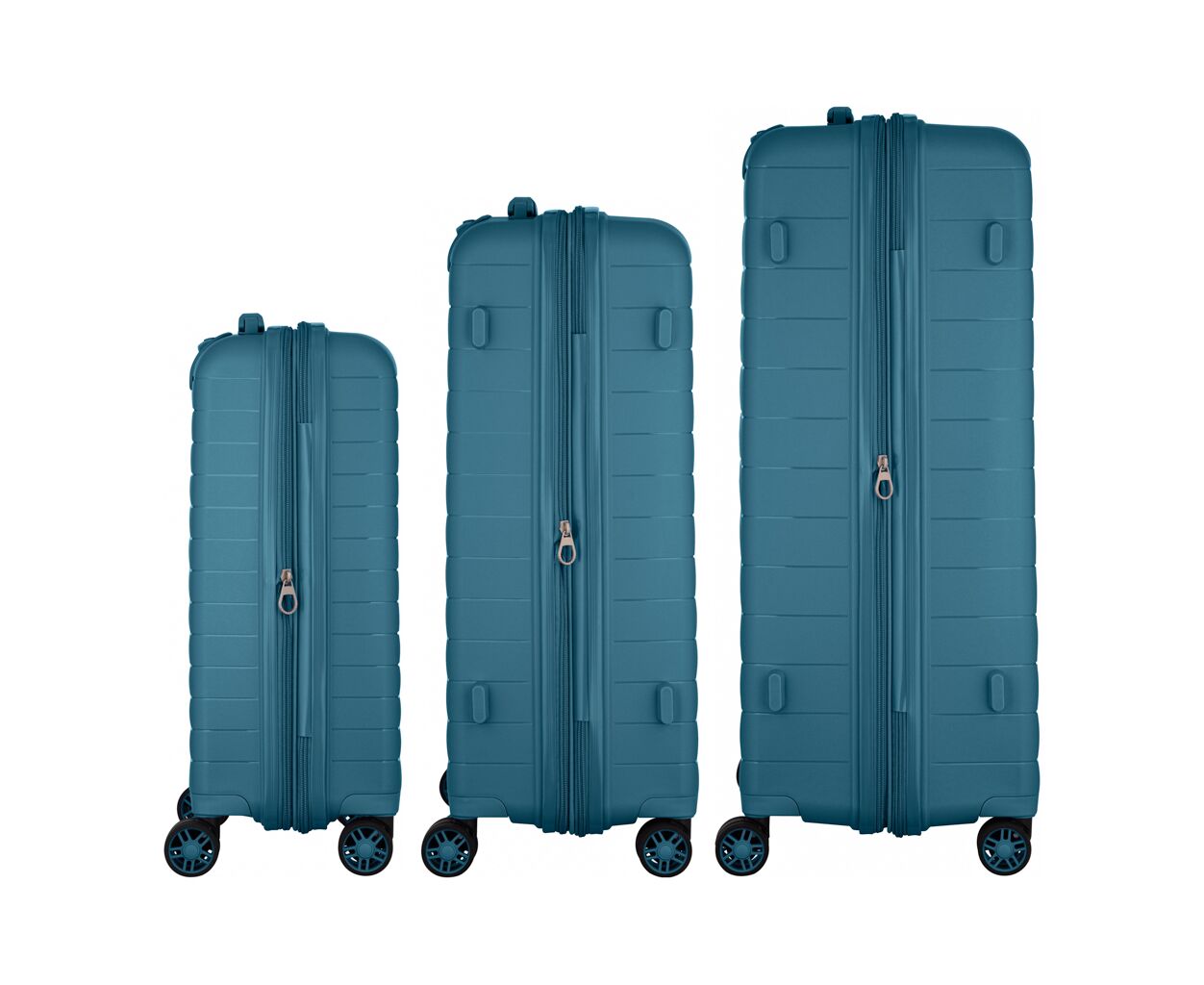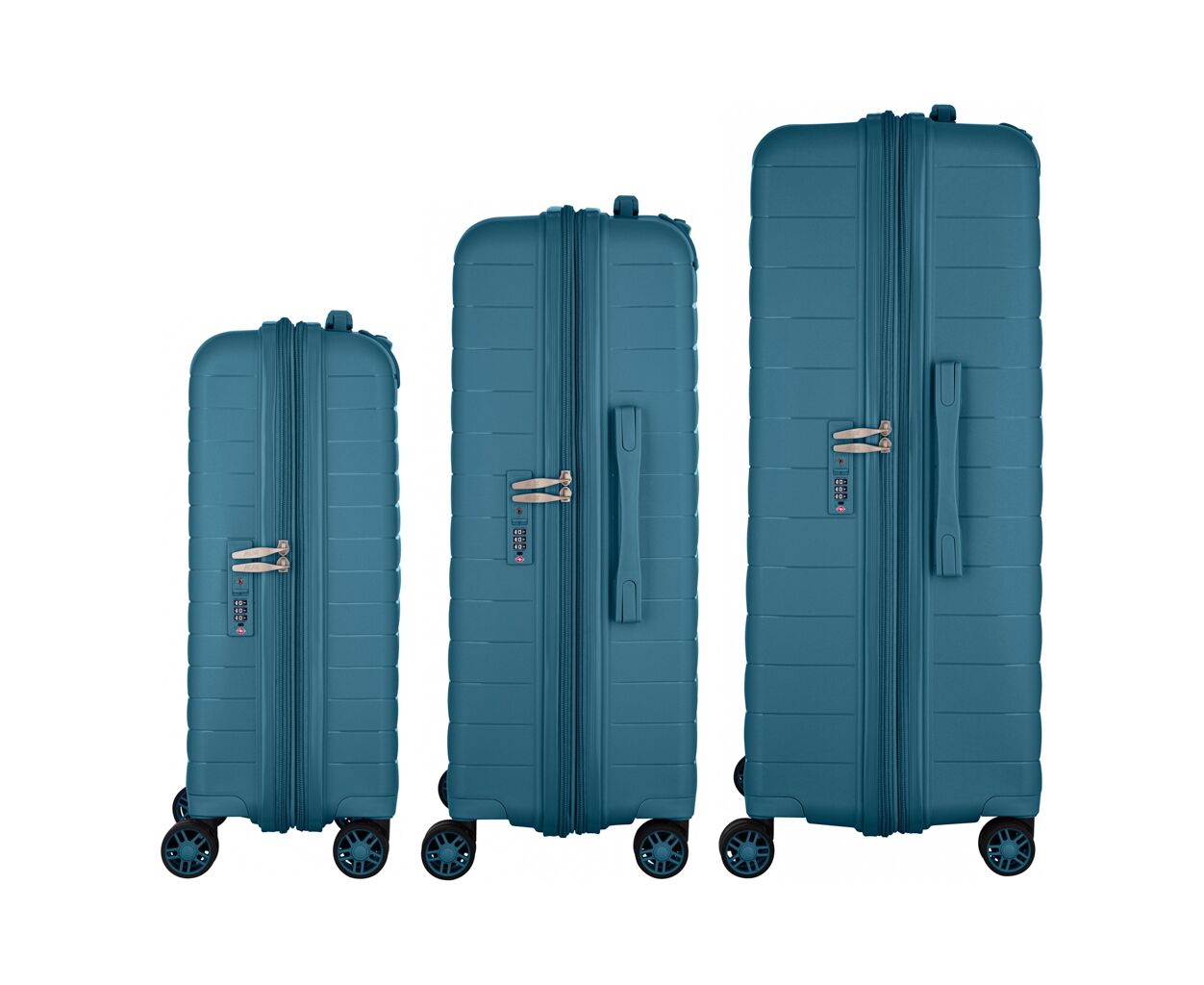 Серія - Aero, кількість валіз в наборі - 3 валізи, Матеріал - поліпропілен, розмір валізи - маленька, середня, велика, Об'єм - 99 л, кількість коліщат - 4, Колір - синій