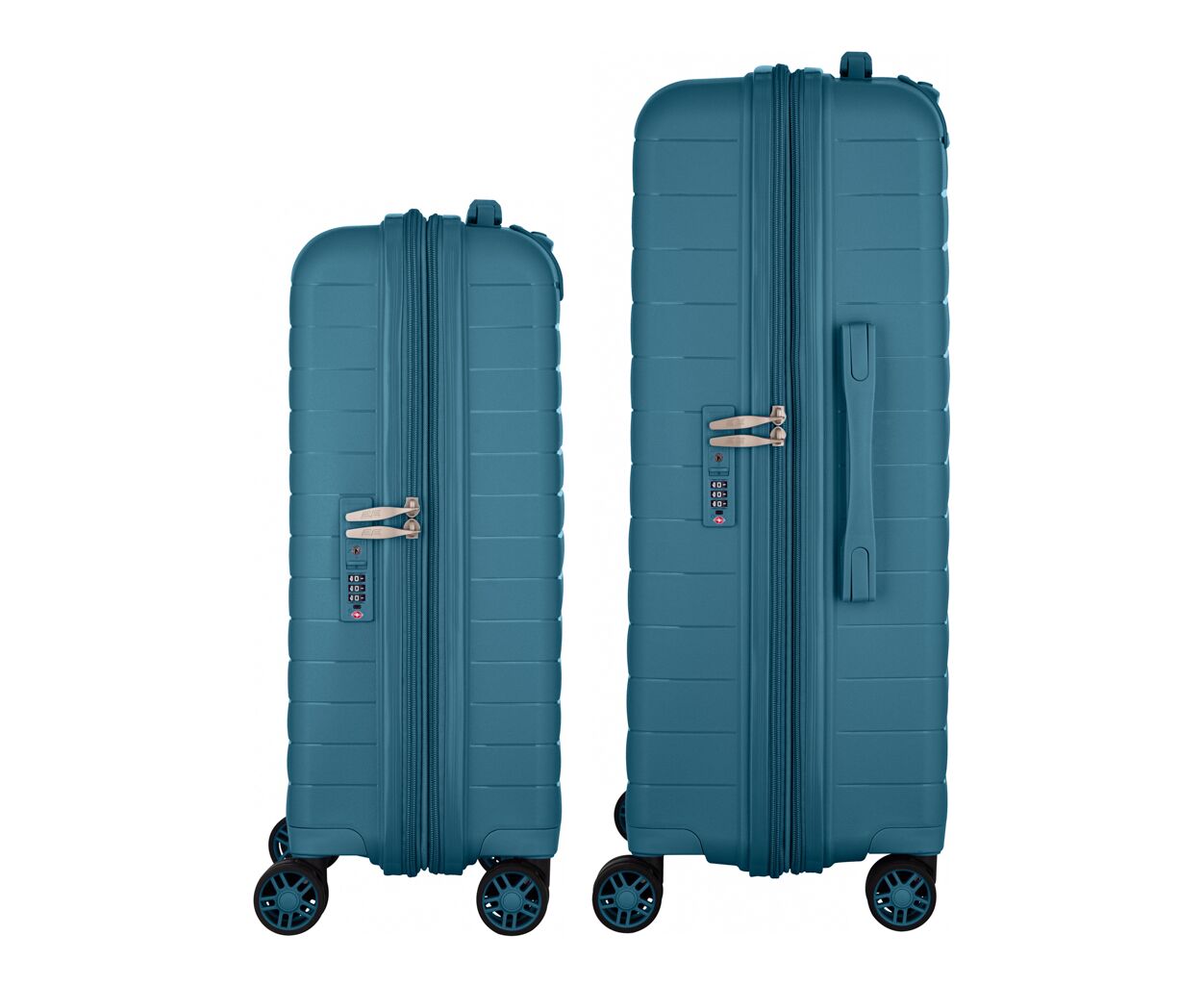 Серія - Aero, кількість валіз в наборі - 2 валізи, Матеріал - поліпропілен, розмір валізи - маленька, середня, Об'єм - 63 л, кількість коліщат - 4, Колір - синій