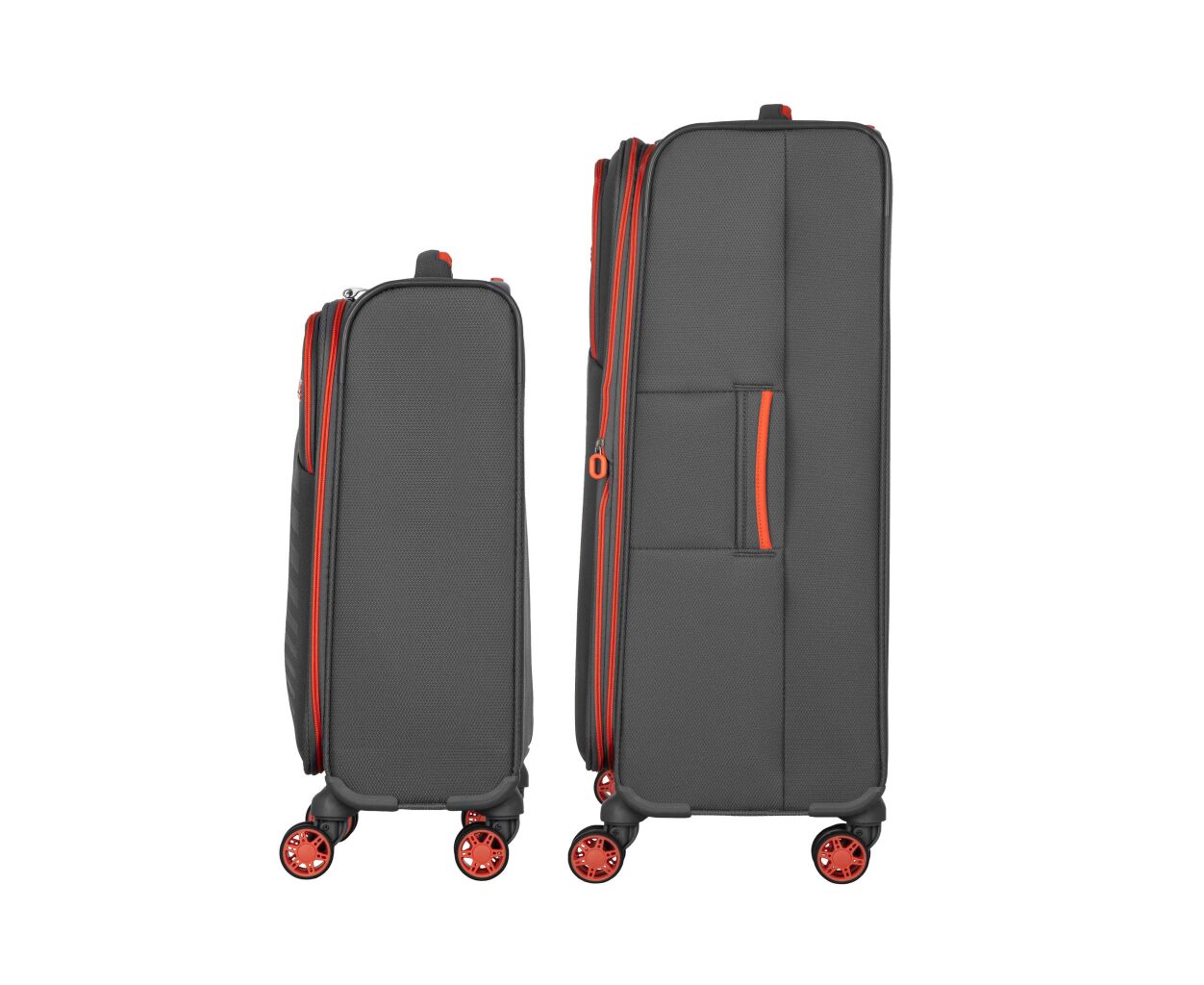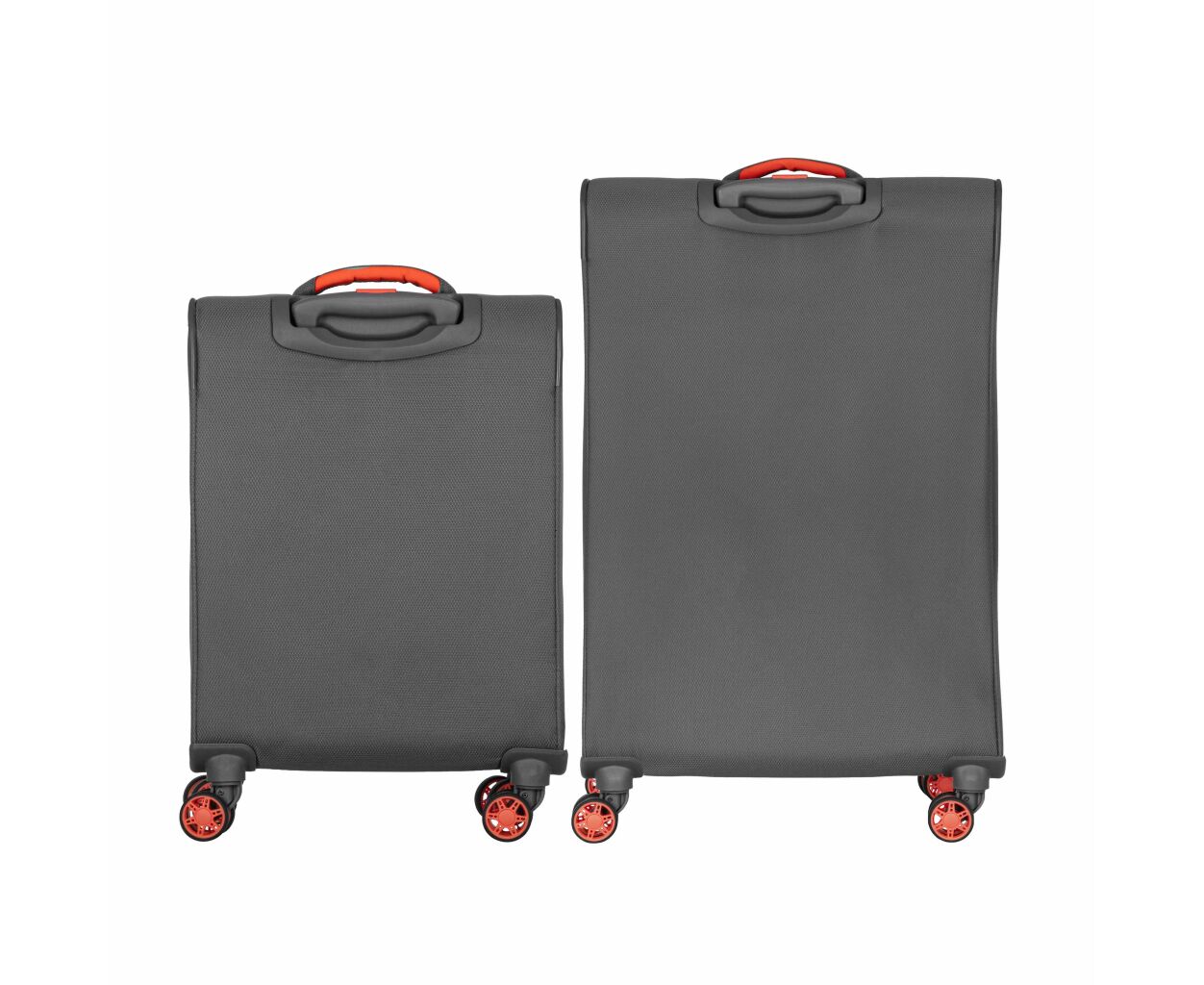Серія - Trek, кількість валіз в наборі - 2 валізи, Матеріал - поліестер, розмір валізи - маленька, середня, Об'єм - 64 л, 78 л, кількість коліщат - 4, Колір - сірий