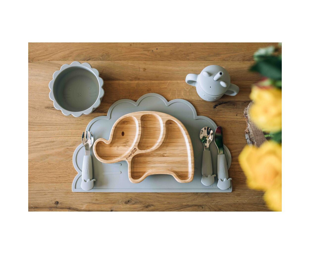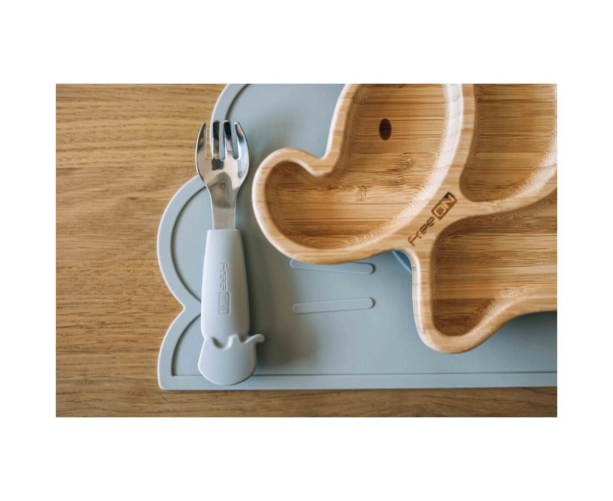 Щоб зробити навчання вашої дитини самостійному харчуванню ще більш практичним і приємним, підставку для тарілок FreeON також можна комбінувати з наступними предметами FreeON: столовими приладами, силіконовою тарілкою, силіконовою мискою, бамбуковою тарілкою та силіконовим нагрудником.