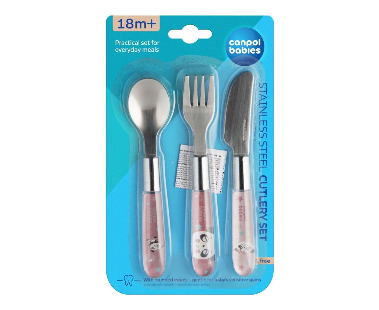 Набір дитячого посуду Lovi EXOTIC ANIMALS столові прибори з нержавіючої сталі, рожеві (9/477_pin2)