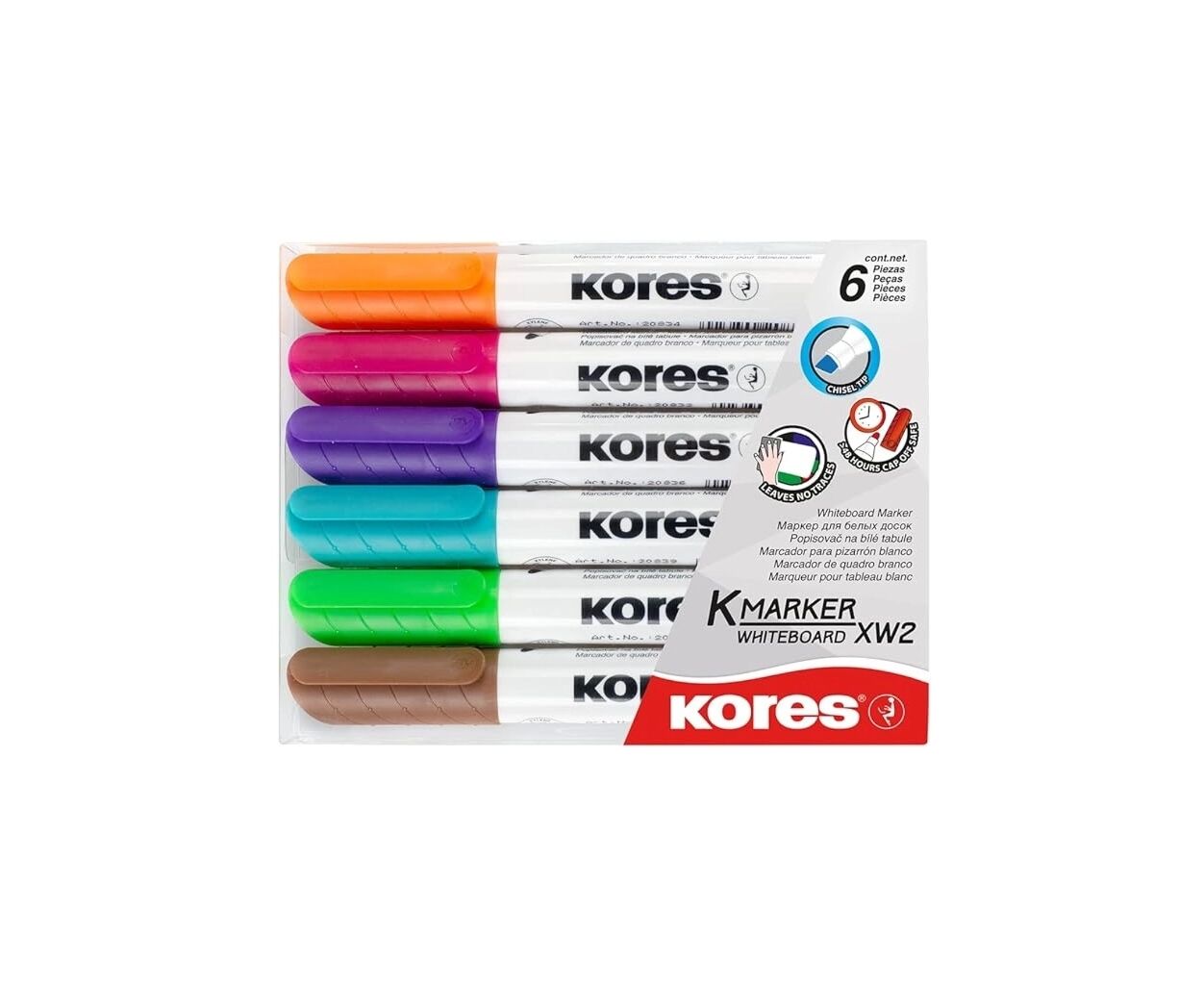 Набір маркерів KORES для білих дошок 3-5 мм, 6 кольорів, скошений (K20803)