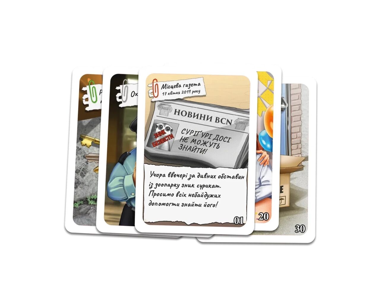 Комплект складається з 32 карт і інструкції, які допоможуть вам втягнутись у розв'язання цієї захопливої загадки. Перемішайте карти та розподіліть їх серед гравців. У кожному раунді важливо правильно обрати: відкрити карту чи залишити її скритою, створюючи свою власну картину подій.