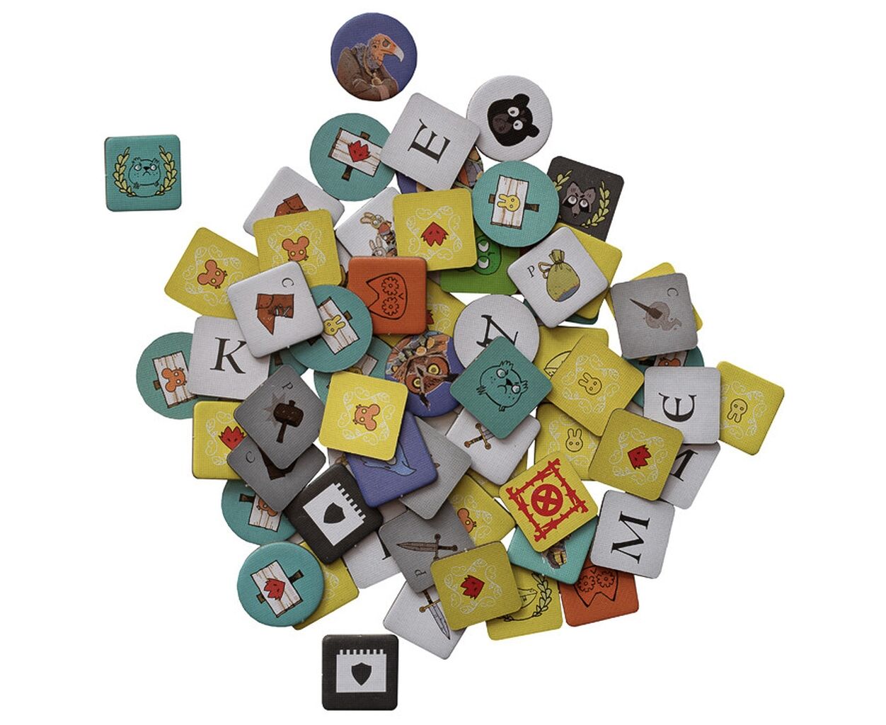 - 4 планшети фракцій, 9 карт, 41 дерев'яний воїн, 65 жетонів, 3 маркери послуг, підставка для карт, правила гри