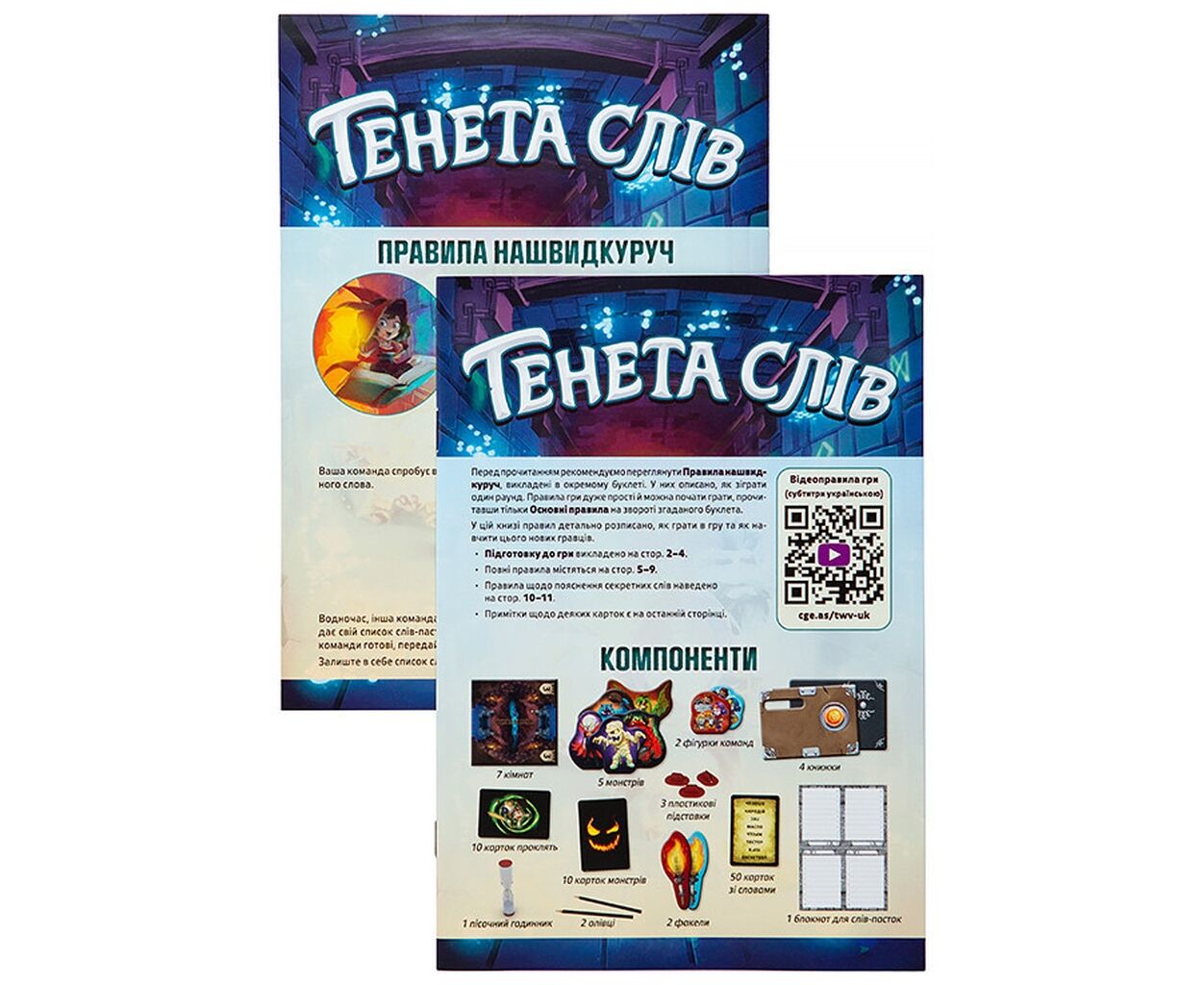 Правила прості для розуміння, проте кожна партія приносить нові виклики й відкриття, роблячи цю гру незамінною для всієї родини. Баркання стратегій, виявлення слів-пасток і подолання проклять — все це робить "Тенета слів" непередбачуваною й неймовірно цікавою розвагою. Гра, безперечно, залишить яскраві враження та стане чудовим доповненням до вашої колекції.