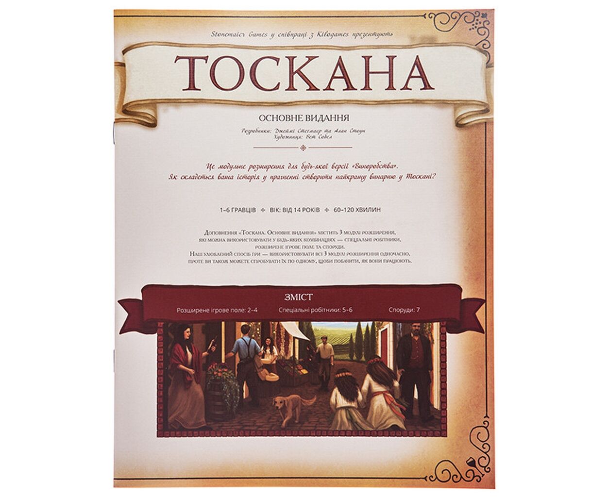 Ця гра, повністю локалізована українською, стане чудовим доповненням до вашої колекції та забезпечить нові захоплюючі ігрові вечори. Відчуйте себе справжнім майстром винороба з доповненням Тоскана!