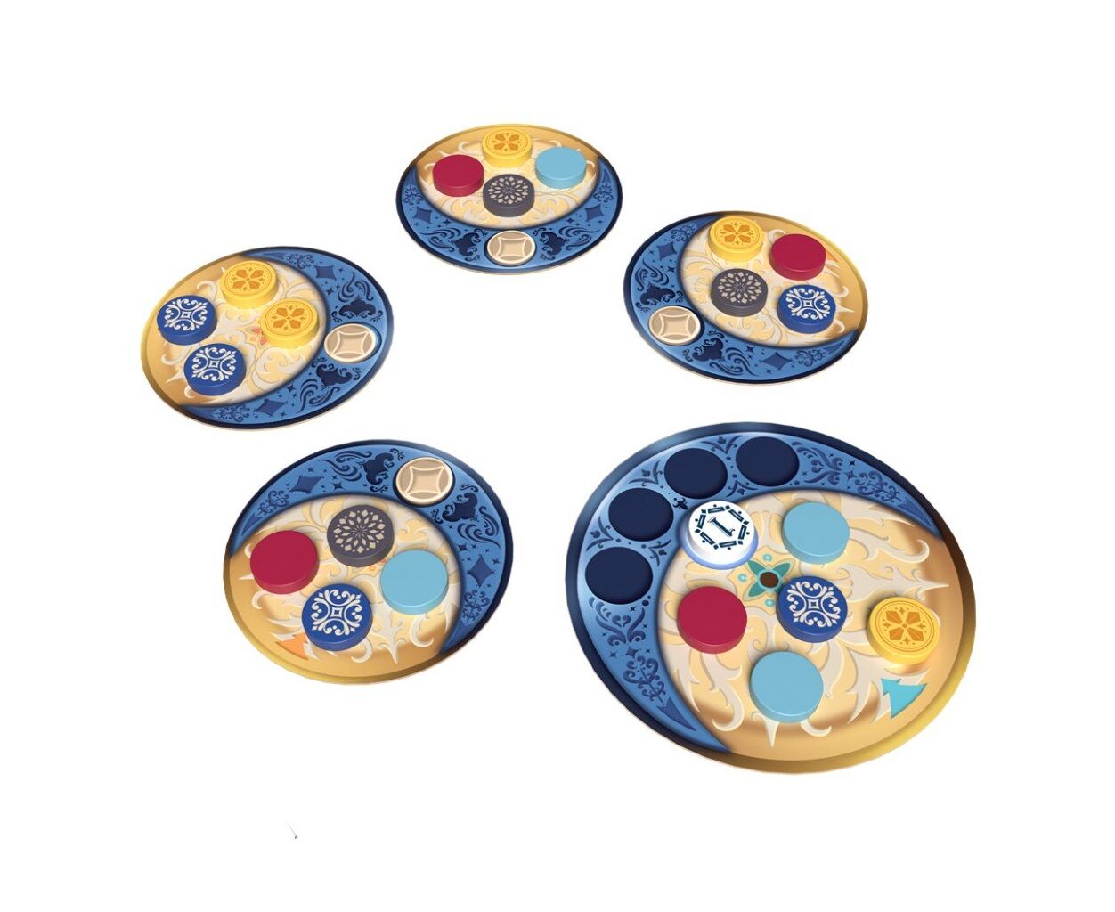 - 2 планшети гравців; 4 жетони гравців; 4 маркери підрахунку очок; 75 плиток; 20 фішок джокерів; 1 планшет підрахунку очок; 5 фабрик; 18 пластин купола; 4 таблички додаткових очок; 1 мішечок; 1 вежа.
