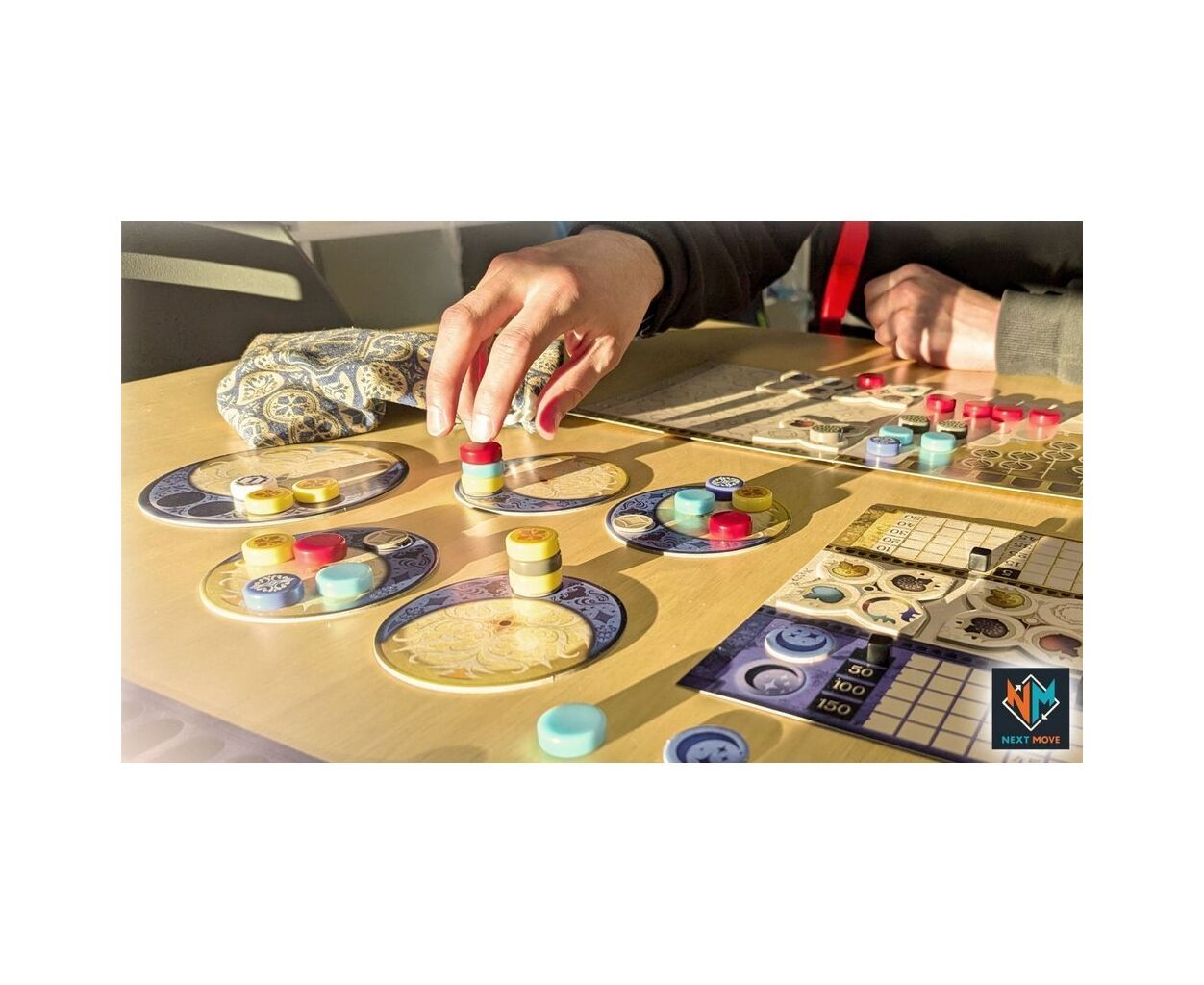 "Настільна гра Plan B Games Азул Дуель (NMG60160UA)" – це вишукане поєднання творчості та стратегії, яке підкорить серця не тільки шанувальників класичного «Азула», а й новачків. Гра від Майкла Кіслінга запрошує поринути у світ середньовічної Португалії, де два найкращі майстри змагаються за можливість прикрасити стелі величного палацу в Сінтрі. Під несміливий шелест плиток ви будете створювати візерунки, що захоплюватимуть своєю вишуканістю навіть короля Мануела І.