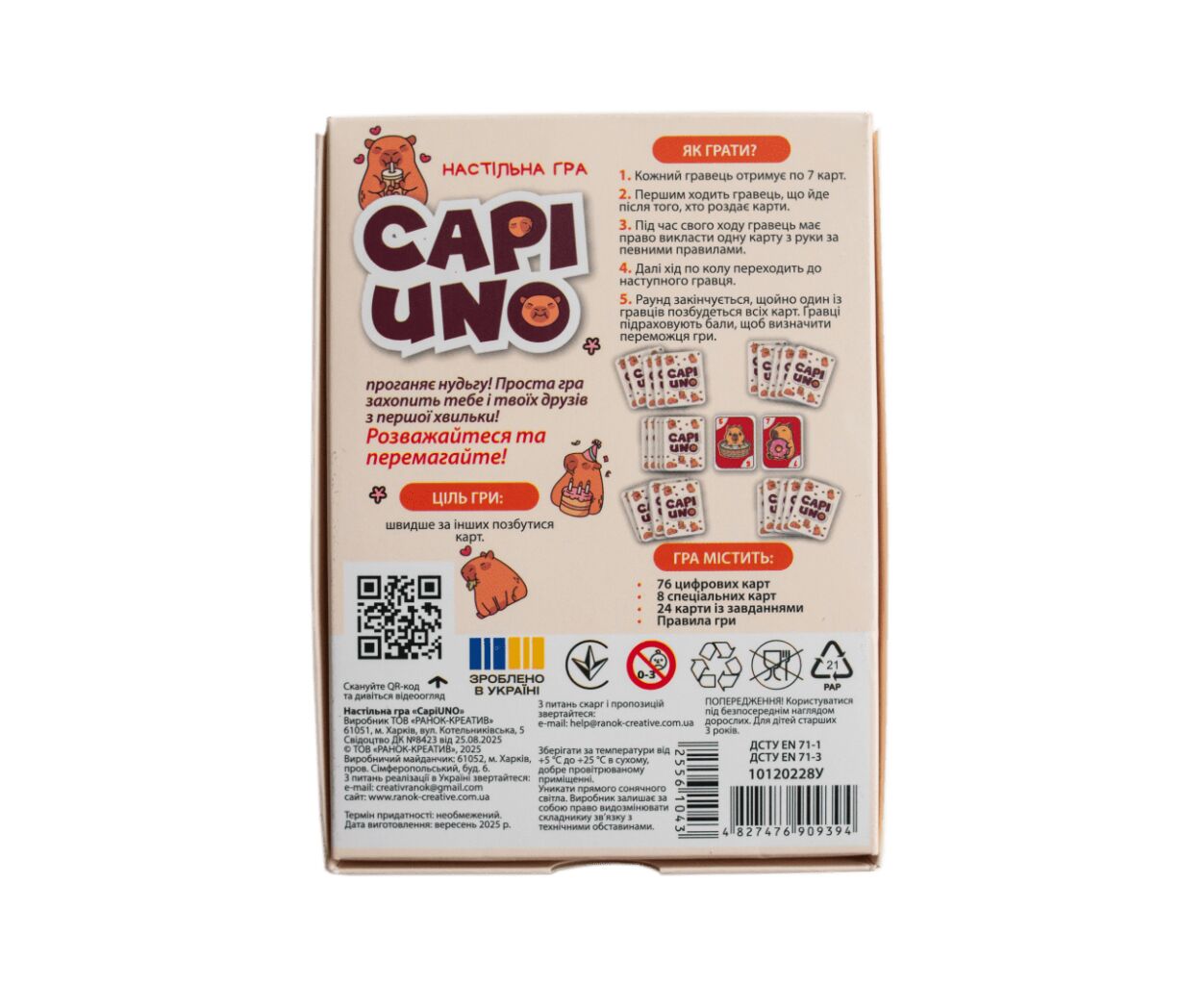 Опис Настільна гра Ранок Капі UNO (4827476909394)
