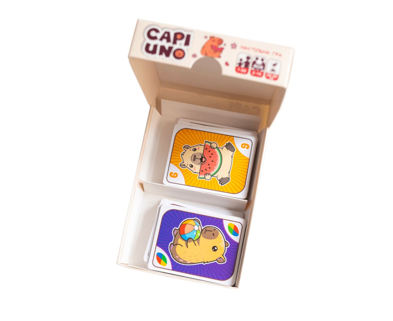 CAPIUNO – КапіУНО — це унікальна настільна гра, яка поєднує в собі тематику тваринного світу та природи. Вона стане чудовою розвагою для дітей віком від 7 років та всієї родини. У грі можуть брати участь від 2 до 10 гравців, що робить її ідеальним вибором для сімейних вечорів, вечірок або подорожей.