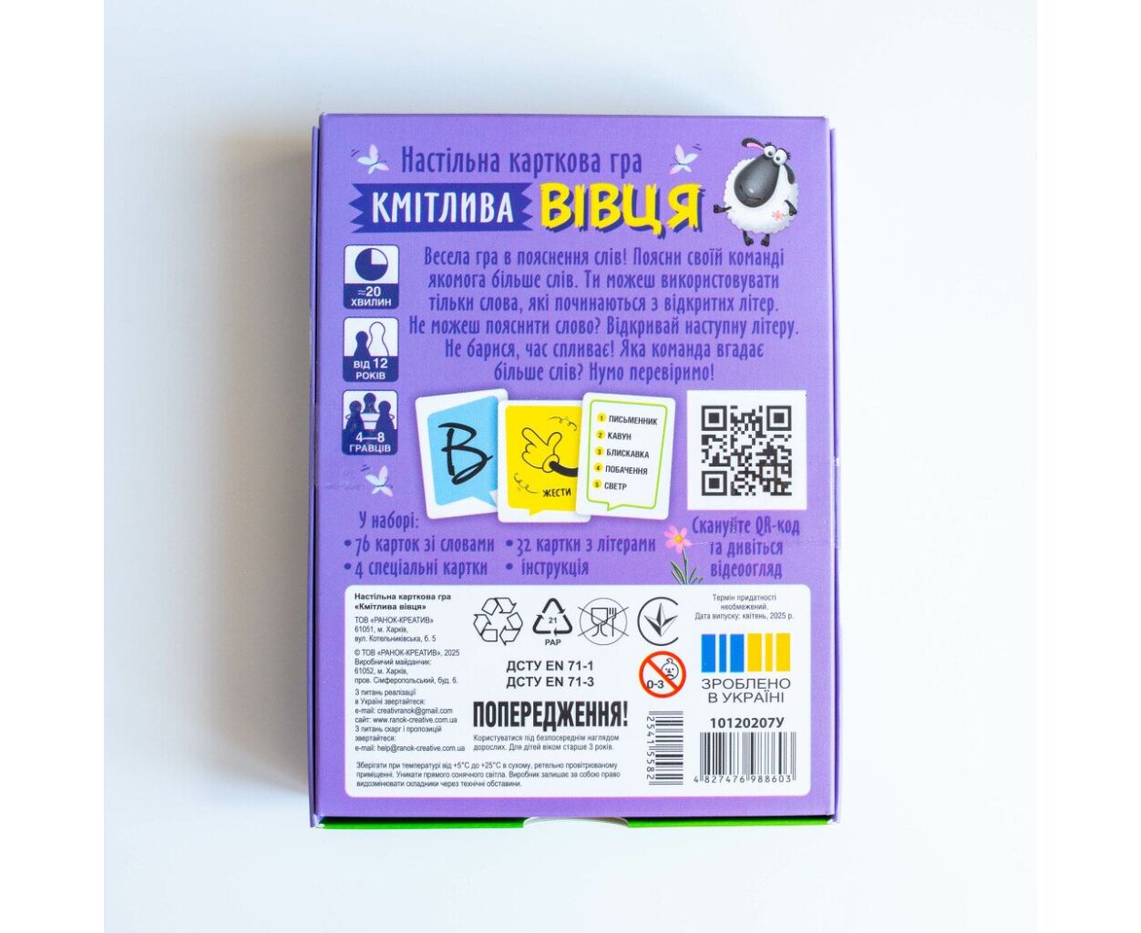 Настільна гра Ранок Від А до Я (4827476988603) — це динамічна карткова гра, яка стане невід'ємною частиною вашого дозвілля! Призначена для всієї родини, вона підходить як для підлітків від 12 років, так і для дорослих, забезпечуючи веселощі в компанії від 4 до 7+ гравців.