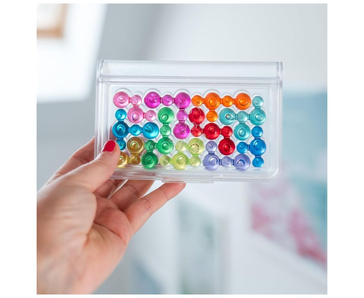 Весь вміст гри, включно з правилами на українській мові, дозволяє повністю зануритися в процес без мовних бар'єрів. Завдяки продуманій конструкції, ця гра легко поміщається в сумку або рюкзак, забезпечуючи розваги в будь-який час і в будь-якому місці. Smart Games IQ Бульбашки - це не просто гра, а інструмент для покращення ваших інтелектуальних можливостей у розважальний та захопливий спосіб.