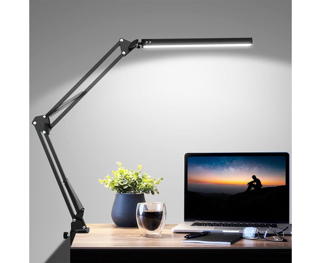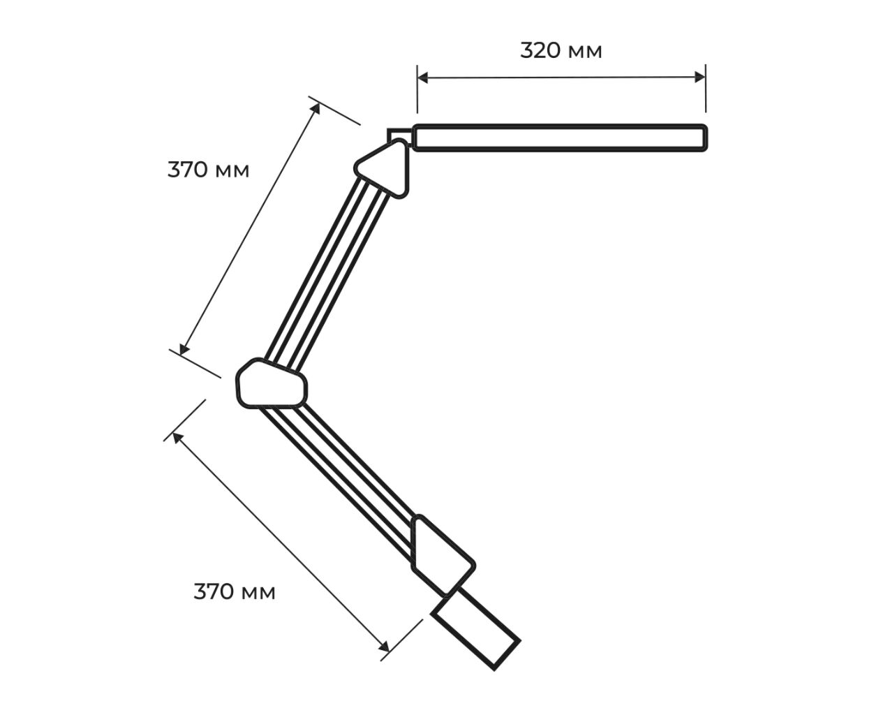 Стиль - модерн, Вид лампи - офісні, Тип лампи - LED-стрічка, Кріплення - струбцина, вбудована (незамінна), Вимикач - кнопка на дроті, ні, так, Матеріал - алюміній, Колір - чорний