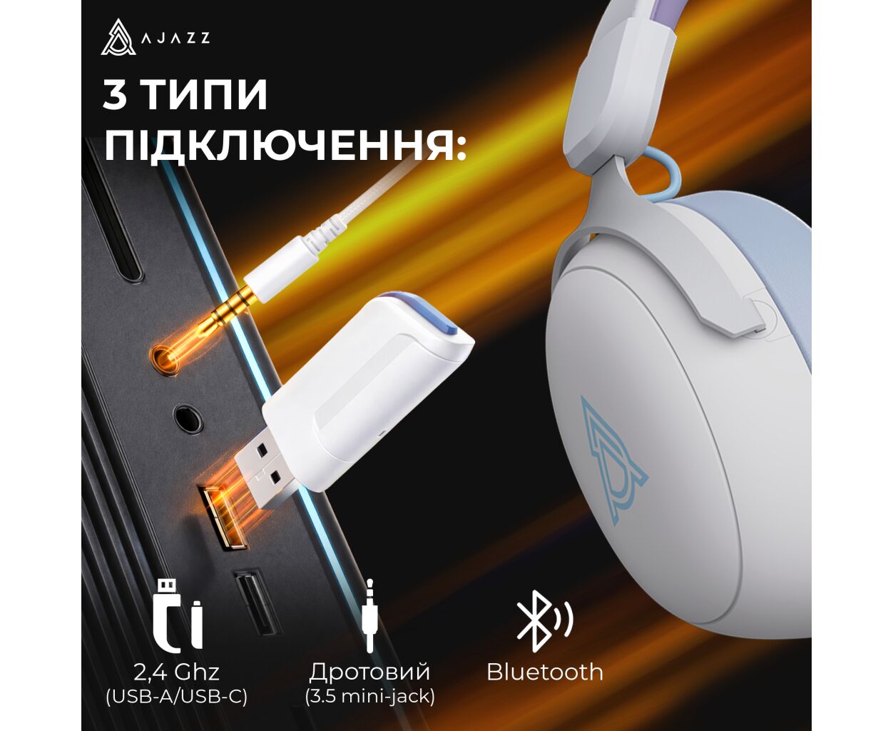 Опис Навушники Ajazz AHM08 MAX 3-Mode White/Purple (AHM08-MAX-PWB)