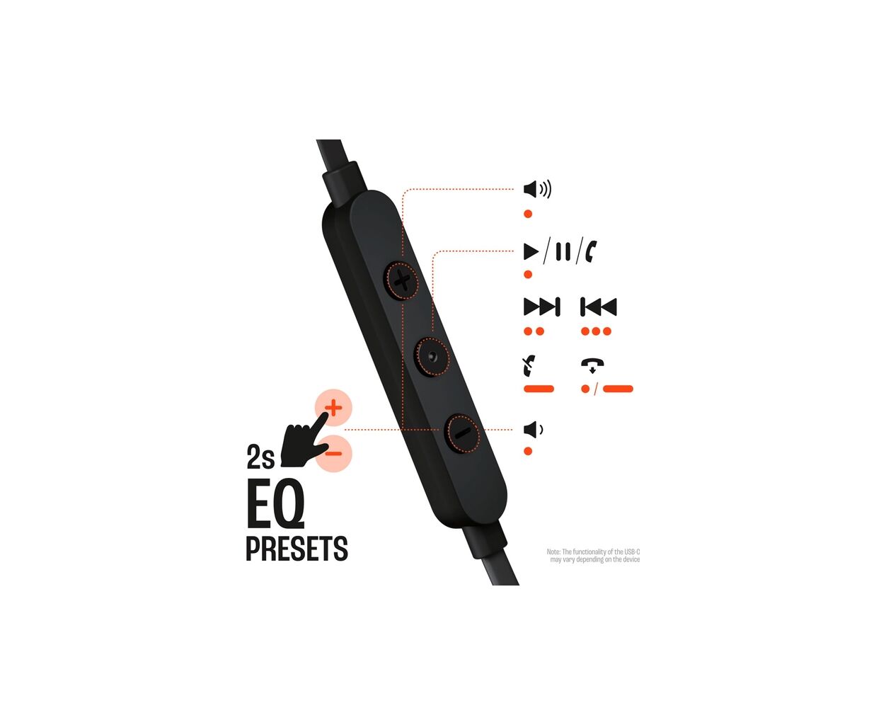 Навушники мають мікрофон, розміщений на дроті, що забезпечує чіткість голосу під час дзвінків, дозволяючи не припиняти роботу або розваги. Управління здійснюється через зручний трикнопковий пульт, що дає можливість регулювати гучність і перемикати треки на свій смак, або ж налаштовувати еквалайзер під ваш настрій за допомогою пресетів Default, Bass або Vocal.