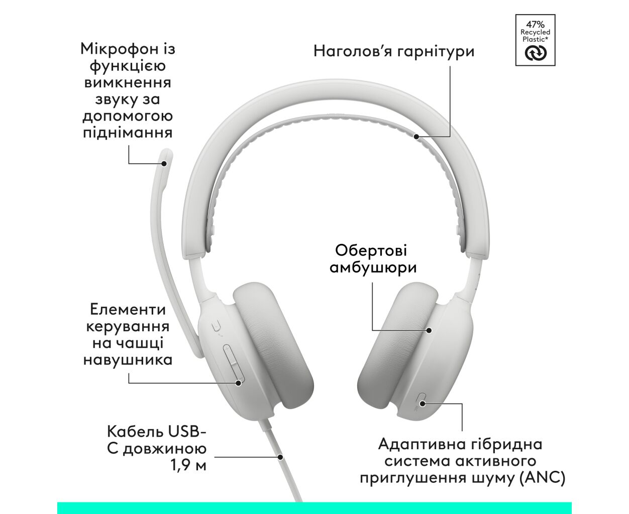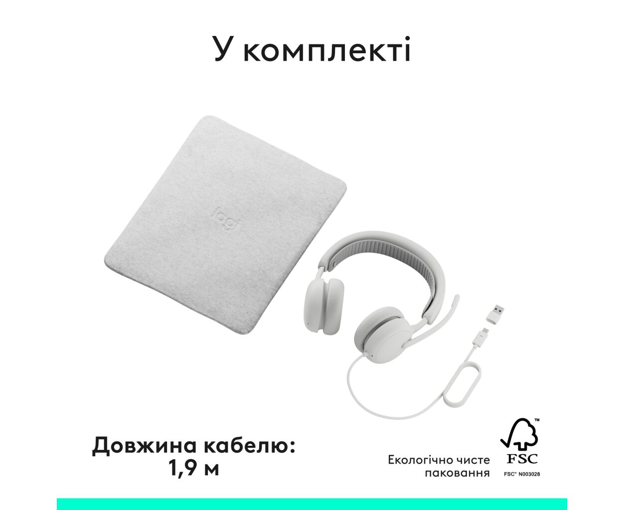Опис Навушники Logitech Zone Wired 2 USB White (981-001621)