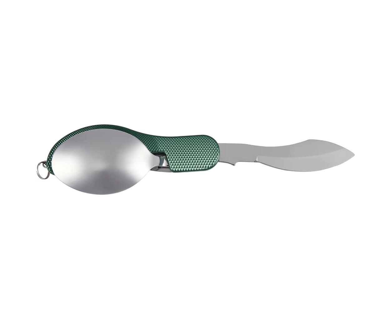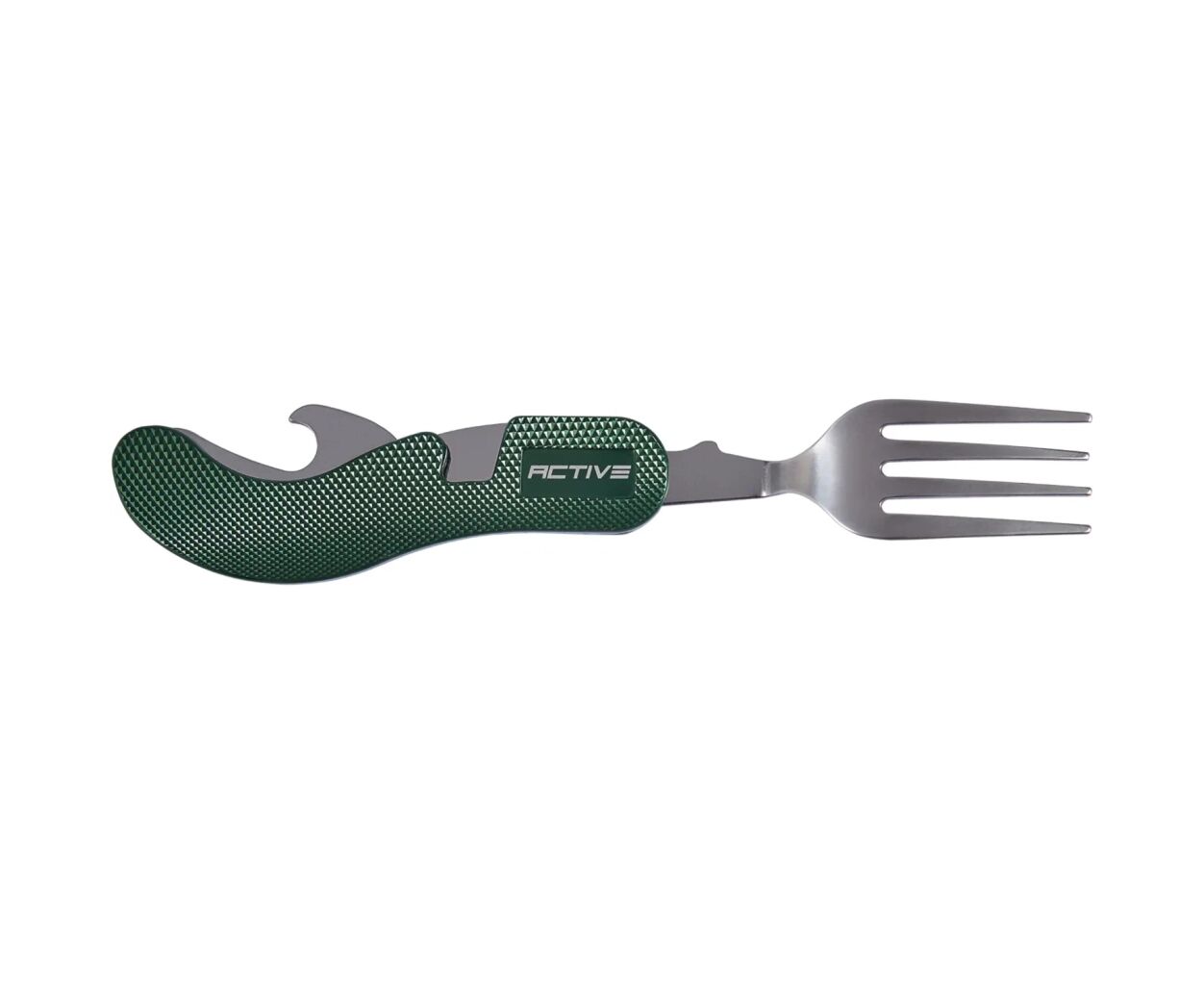 Набір столових приборів Active Knives&Tools Launcher 3 - похідний комплект столових приборів на одну персону.Набір складається з ложки, виделки, ножа та відкривачки, виготовлених зі сталі, руків’я виконане з текстурованого алюмінію. Всі прибори надійно з’єднуються одне з одним, щоб займати менше місця і мати змогу компактно зберігати його в похідному рюкзаку або навіть в кишені.