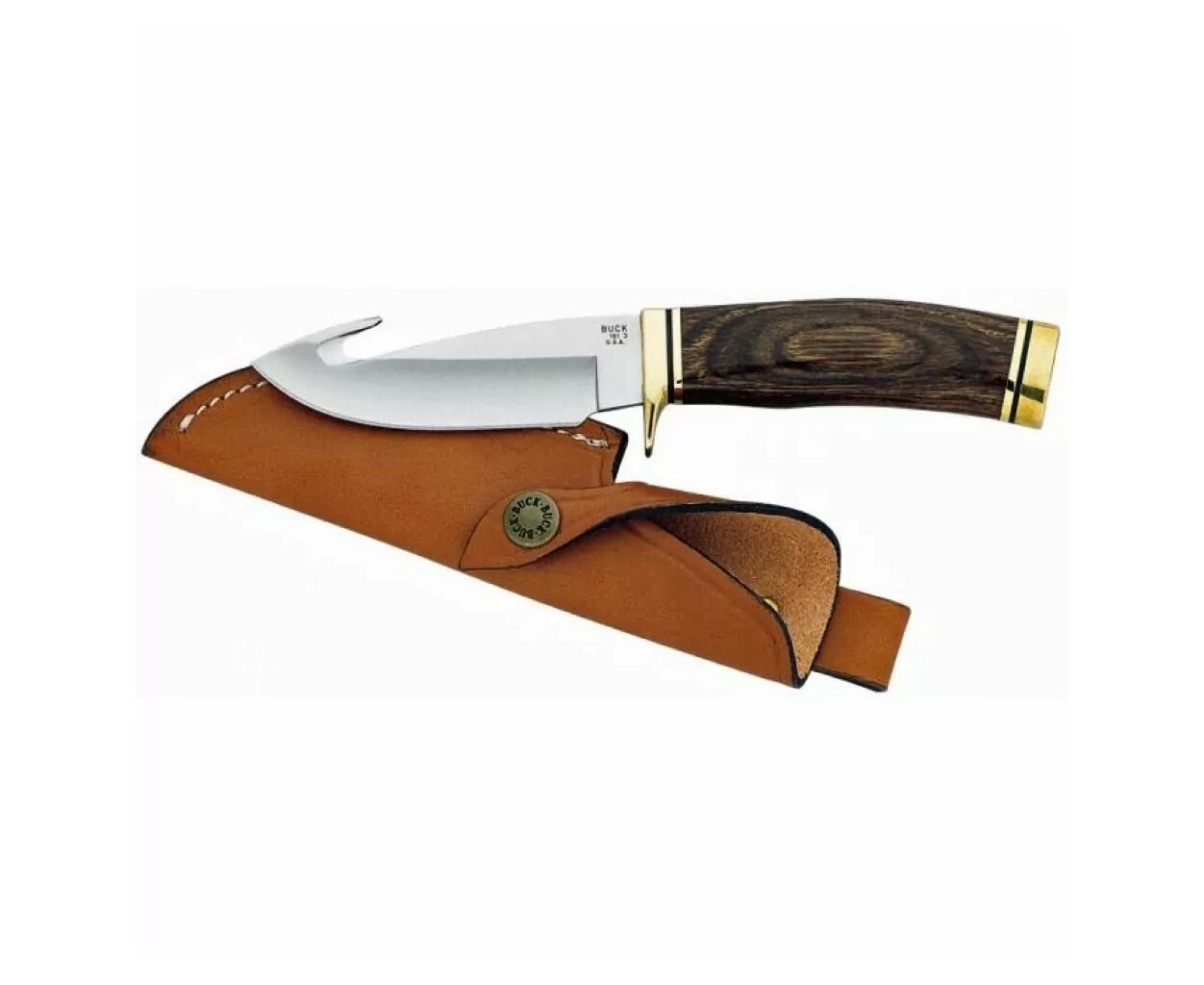 Особливістю моделі є наявність практичного гачка для потрошіння (gut hook), який дозволяє швидко та акуратно обробляти трофей, не пошкоджуючи внутрішні органи. Руків’я виконана з темного натурального дерева, що надає ножу елегантність і комфорт під час використання. Больстер із нержавіючої сталі посилює міцність конструкції та забезпечує відмінну збалансованість ножа.
