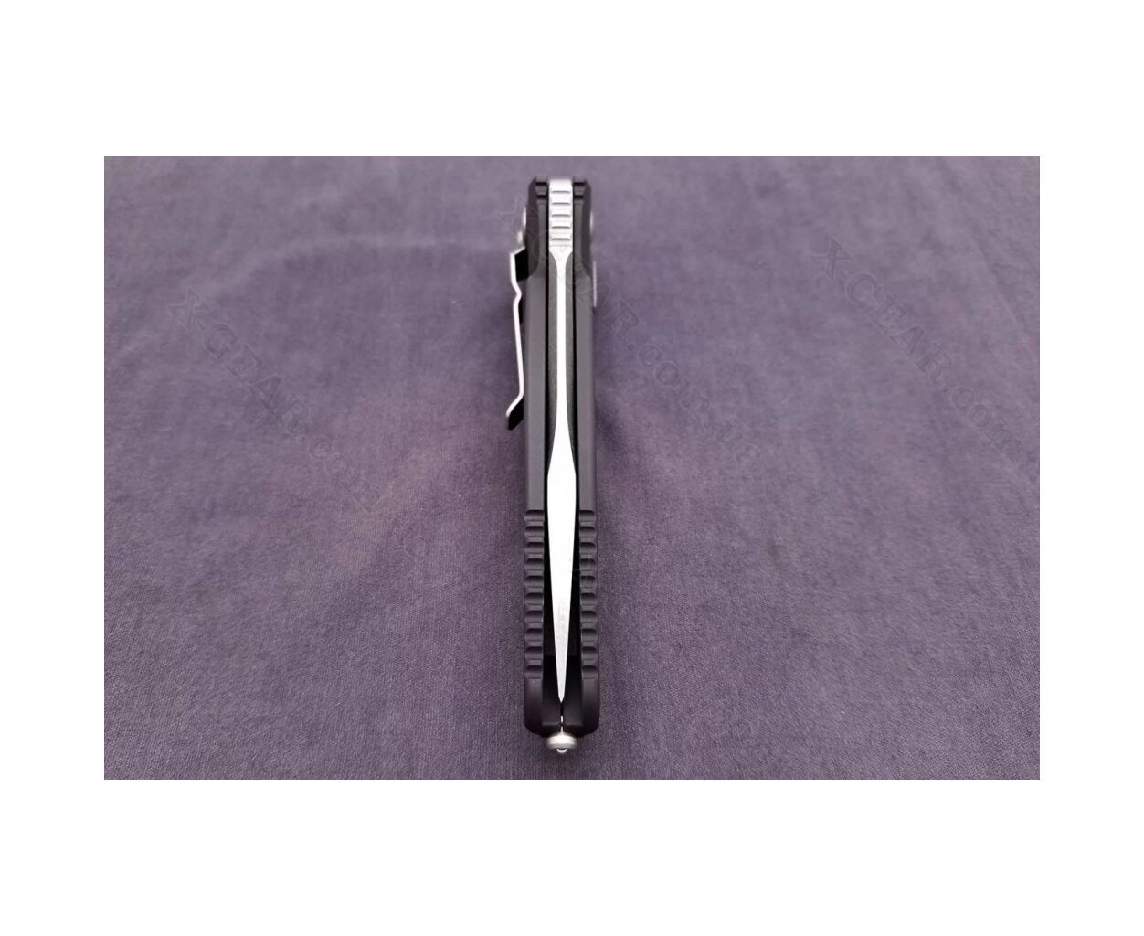Матеріал рукояті – міцний і легкий сплав на основі алюмінію з анодуванням чорного кольору. Пластикові текстуровані вставки ефективно протистоять ковзанню і покращують зчеплення рукояті з долонею. Ближче до навершя і на упорі для великого пальця нанесено додаткове поперечне рифлення – з тією ж метою. Підпальцева виїмка слабко виражена. Також на рукояті присутня сталева однопозиційна кліпса поруч з осьовим гвинтом. Є отвір для темляка і, в деяких моделях, склобій.
