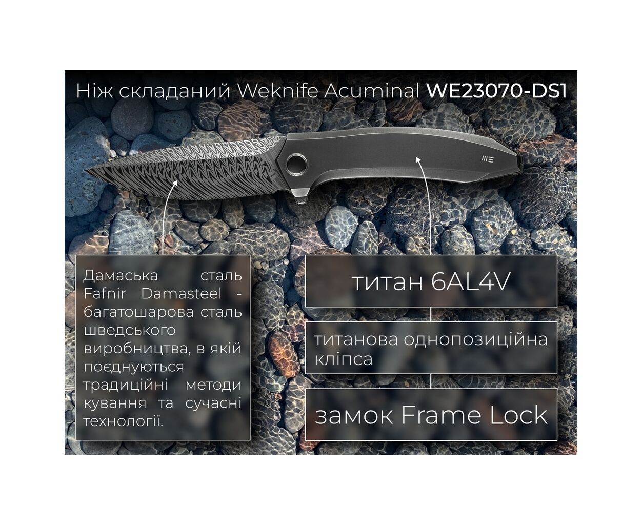 Опис Ніж Weknife Acuminal, Titanium, Damascus (WE23070-DS1)