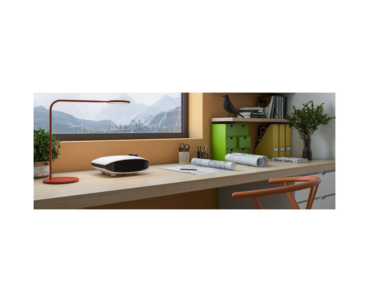 Завдяки стильному дизайну в чорному і білому кольорі, обігрівач гармонійно впишеться в інтер'єр будь-якого приміщення. Він виготовлений з урахуванням ергономіки: додаткові опори для підлоги та можливість використання на столі роблять його універсальним у повсякденному житті. Дефлектор для вертикального нахилу гриля дозволяє направляти потік теплого повітря саме туди, де це необхідно.