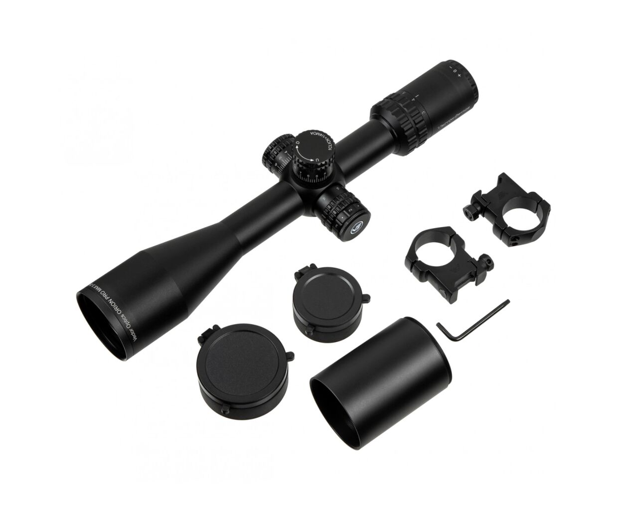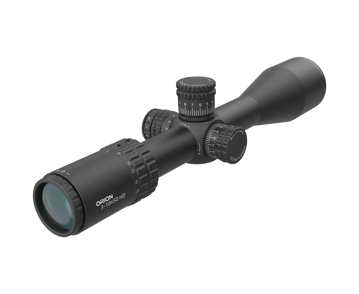 Vector Optics Orion Pro Max 3-18x50 – універсальний приціл для точної стрільби на середні та дальні дистанції, що володіє такими особливостями, як змінне збільшення від 3x до 18x, об'єктив 50 мм, прицільна сітка VOR-5 MOA з BDC, підсвічування з 6 рівнями ярк регулюванням до 100 MOA, а також удароміцний та водозахищений корпус з авіаційного алюмінію.