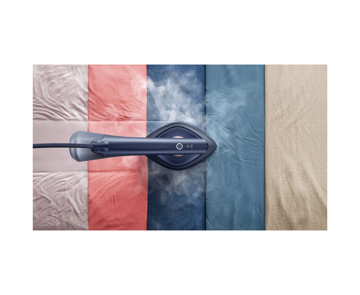Відчуйте потужність прасування без громіздкості традиційної праски. Наша інноваційна технологія забезпечує потужну, рівномірну подачу пари без протікань* для бездоганних результатів на будь-яких тканинах — від делікатного шовку до щільної бавовни.