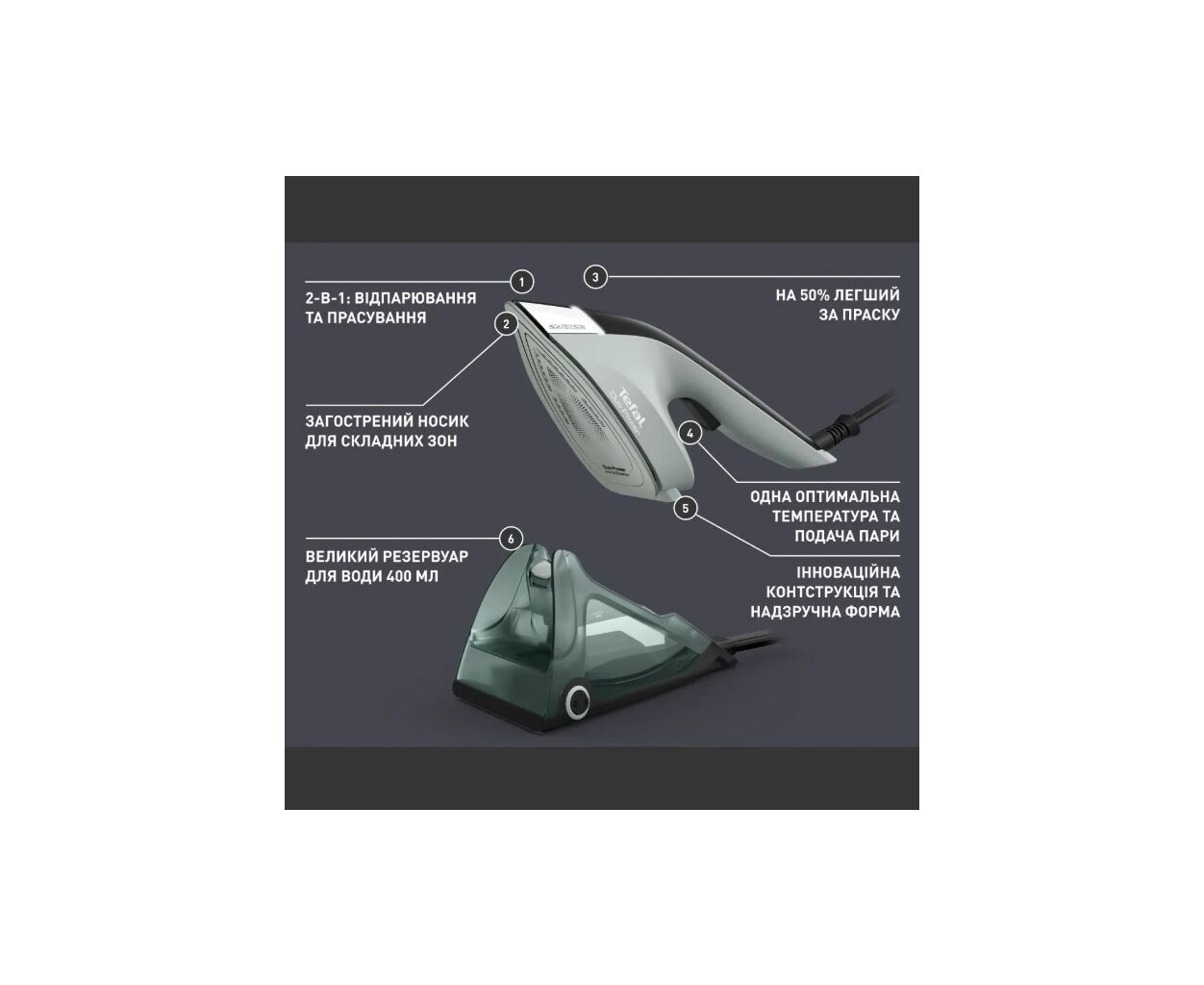 Вага цього пристрою лише 750 г, тому прасувати та відпарювати ним надзвичайно легко.