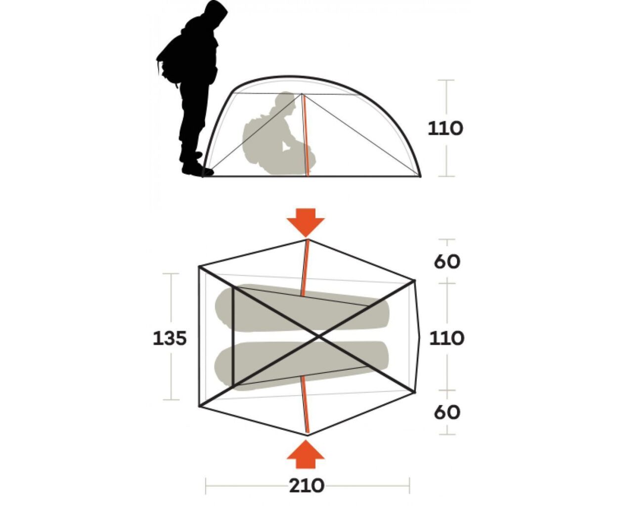 - Зовнішній тент: 70D Polyester Ripstop, 85 g/m² with Polyurethane Coating, FR Treatment (поліестер із поліуретановим покриттям та вогнезахисною обробкою), водостійкість 3000 мм