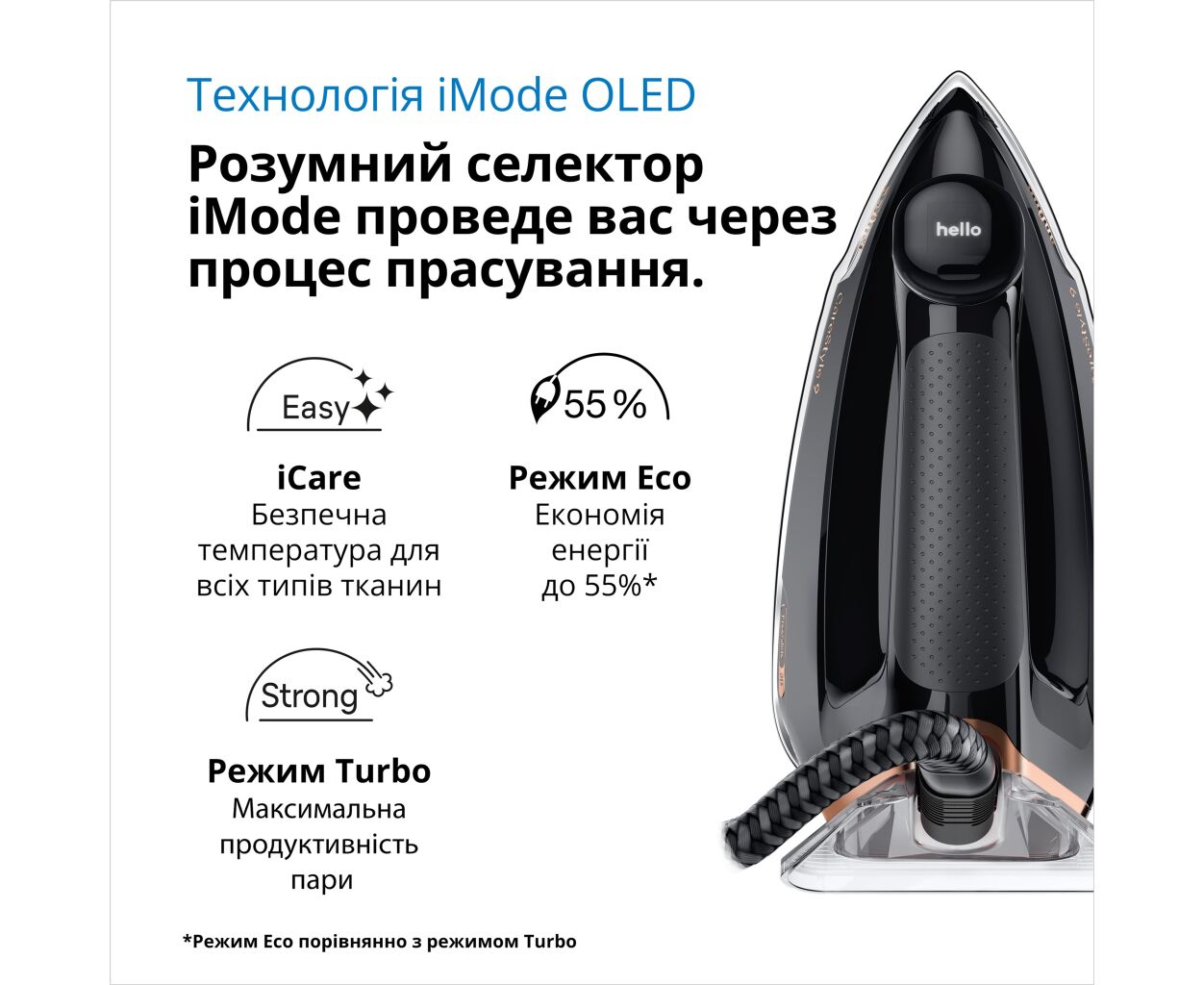 - оптимальна температура підошви підходить для всіх типів тканин