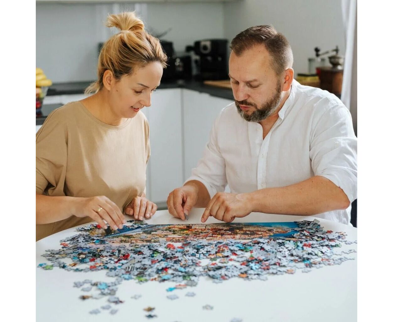 Високу якість, насиченість кольорів та безпеку при укладанні пазлів забезпечує спеціальний каландрований картон, який відбиває світло та покритий екологічними фарбами.