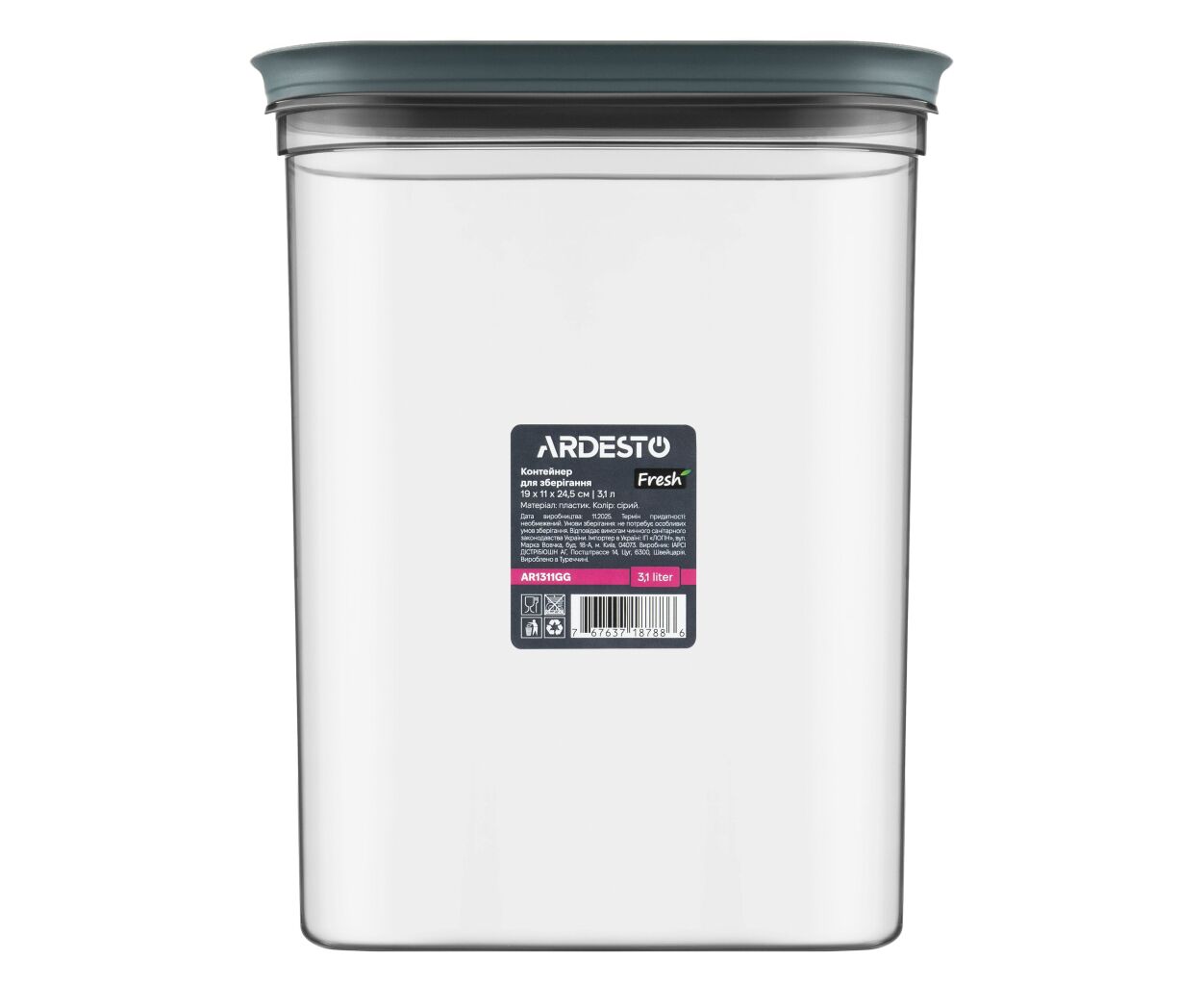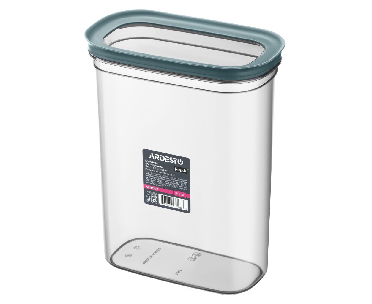 Харчовий контейнер Ardesto Fresh 3.1л, пластик, прямокутна, сірий (AR1311GG)