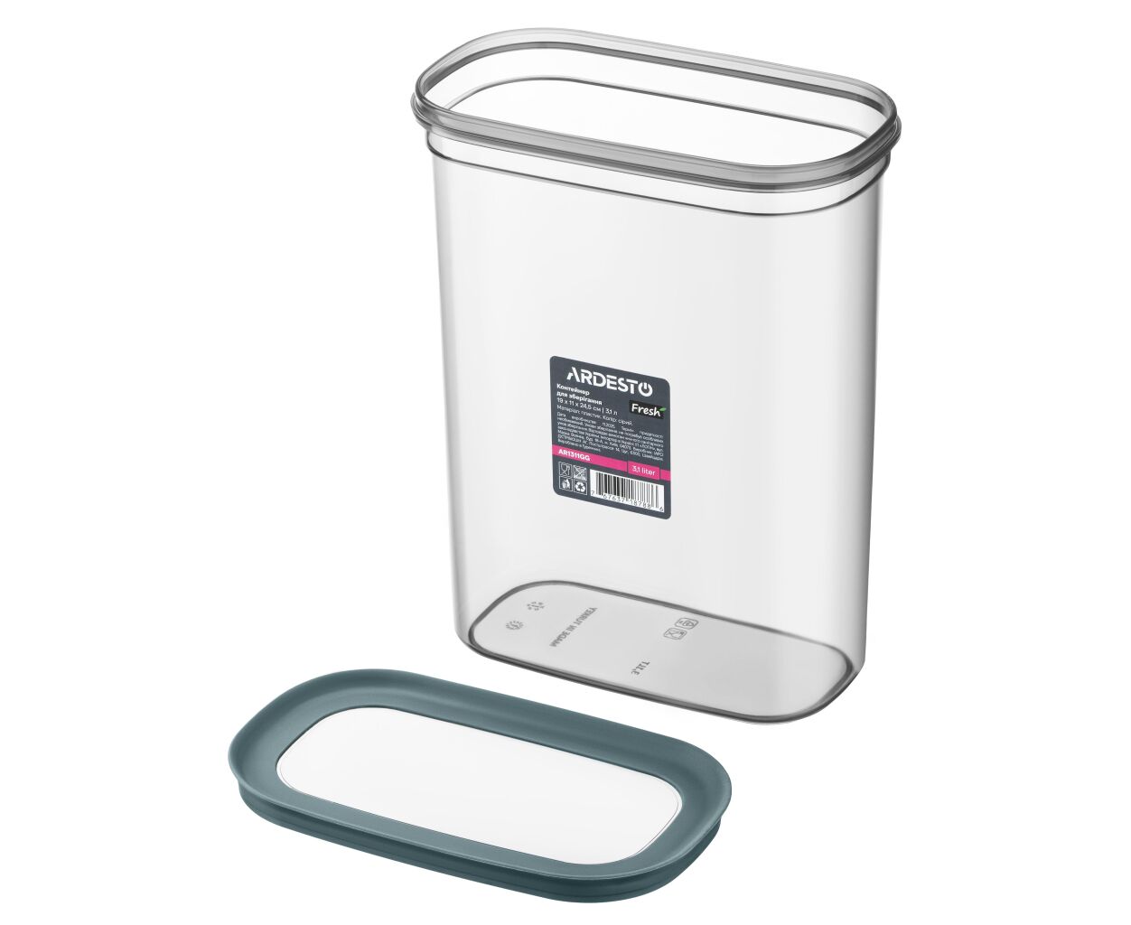 Характеристики Харчовий контейнер Ardesto Fresh 3.1л, пластик, прямокутна, сірий (AR1311GG)