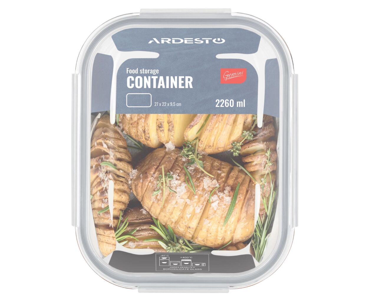 Харчовий контейнер Ardesto Gemini прямокутний, 2.26л, боросилікатне скло, прозорий (AR1222RCB)