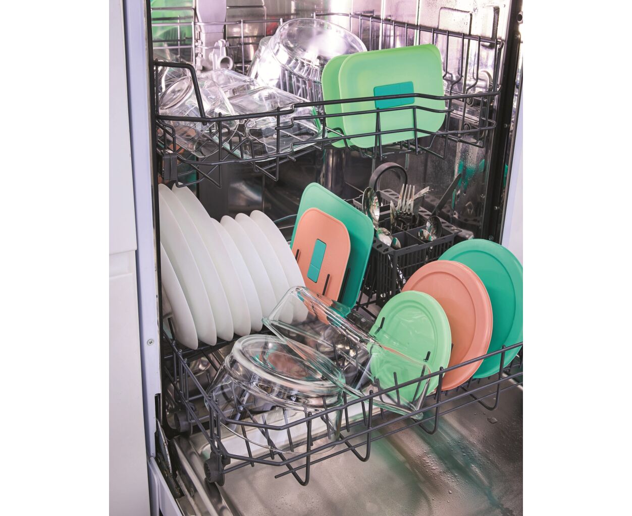 - витримує перепади температури до 110 °С, що дозволяє використовувати посуд у мікрохвильовій печі;