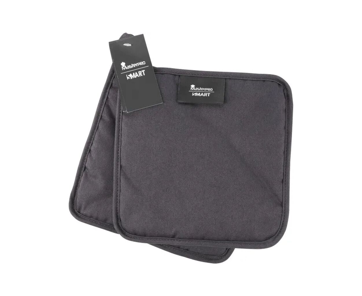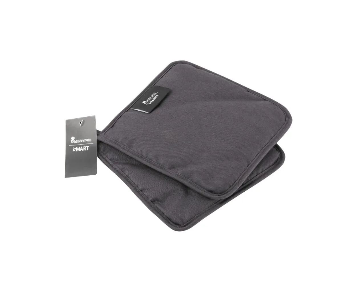 Набір підставок для каструль MasterPro Smart, що складається з 2 штук, стане відмінним доповненням вашої кухні. Виконані у чорному кольорі, ці підставки забезпечують захист вашої робочої поверхні від гарячих каструль. Виготовлені з міцного текстильного матеріалу, підставки поєднують у собі практичність і стильний дизайн.