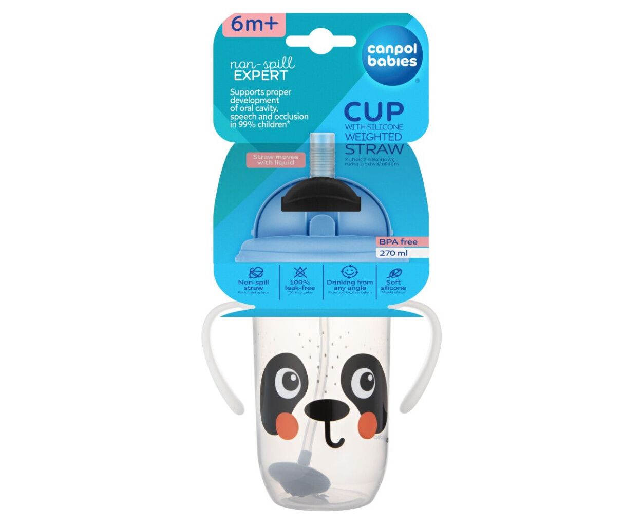 Опис Поїльник-непроливайка Canpol babies BabiesBo з трубочкою і обтяжувачем, 270 мл, панда (56/617_whi)