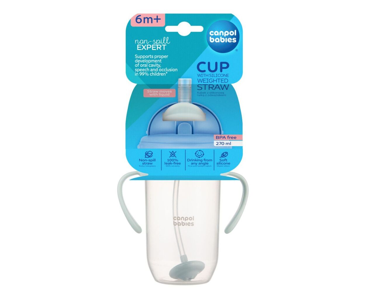 Поїльник-непроливайка Canpol babies з трубочкою і обтяжувачем, 270 мл, зелена (56/623_gre)