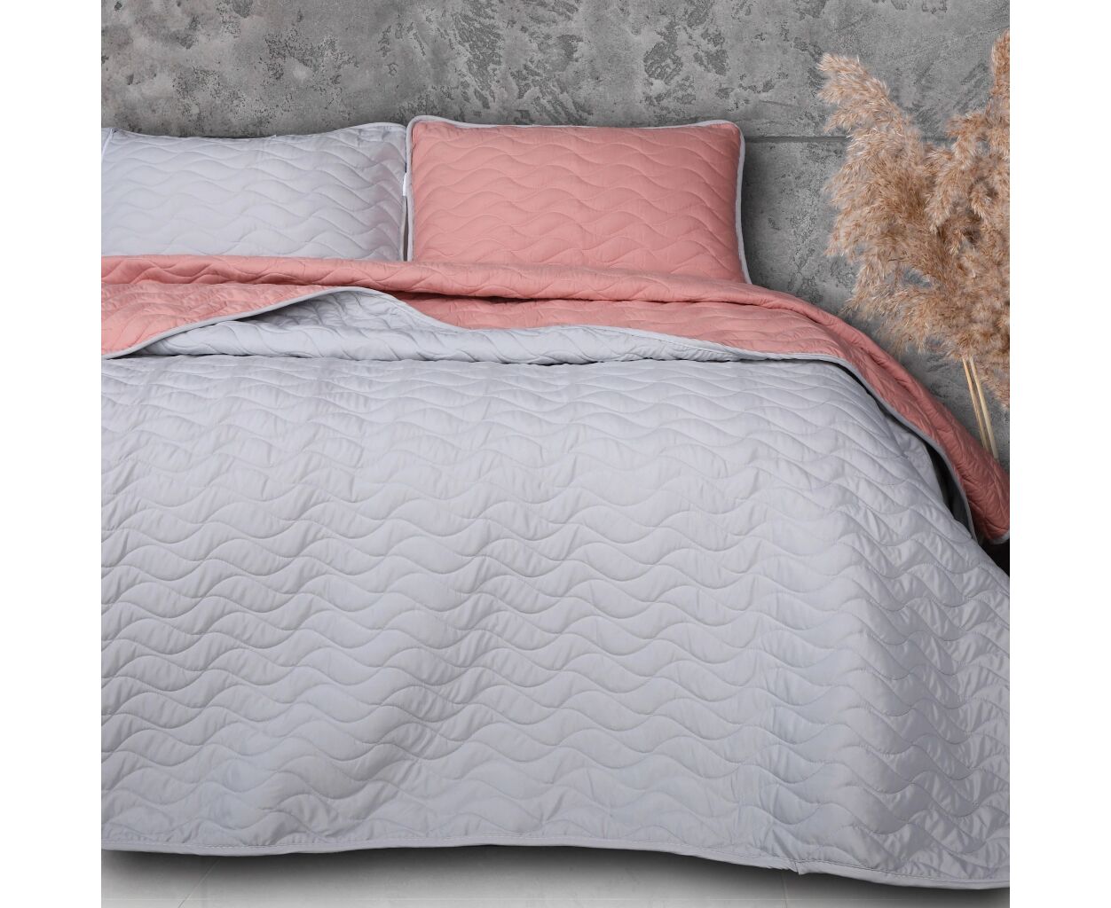Чудове двостороннє покривало з 2 наволочками з цікавим рельєфним тисненням. Завдяки тому, що покривало має два різні кольори з кожного боку, його можна змінювати за бажанням кожною стороною. Покривало колекції Serenity Line гармонійно доповнить будь-яку інтер'єрну композицію та стане окрасою кімнати. Воно чудово пропускає повітря роблячи ваш відпочинок комфортним, прикрасить вашу постіль та зігріє вас прохолодним вечором.