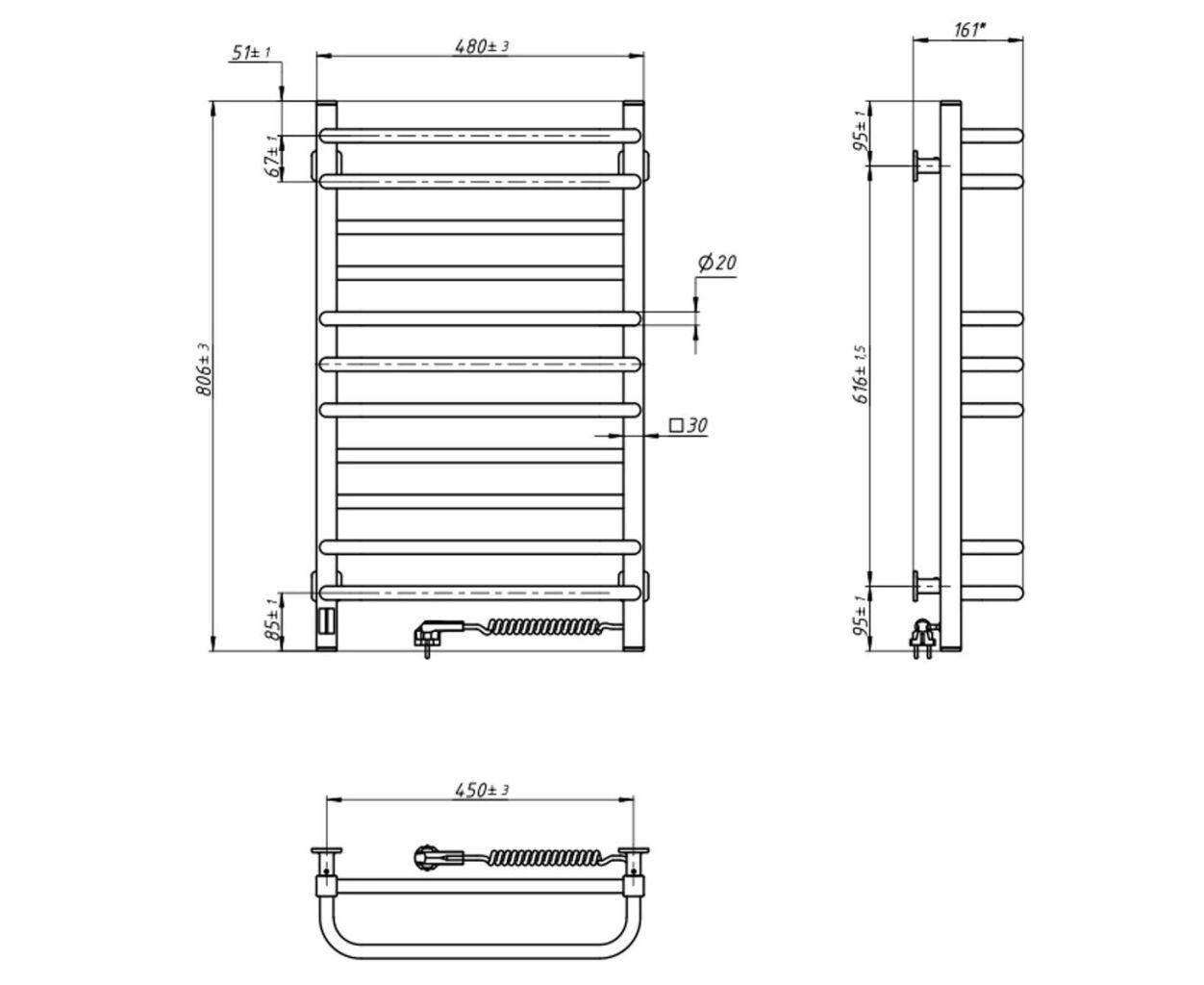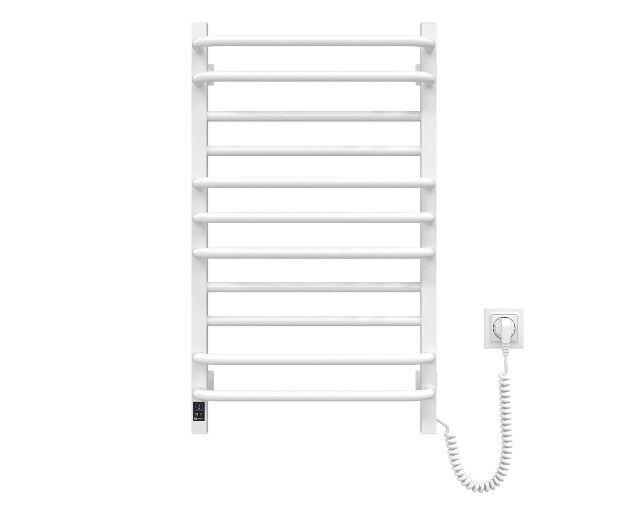 Електрична сушка для рушників NAVIN Грандіс - яскравий зразок мінімалізму. Модель має бічні колектори (стійки), виготовлені з профільної квадратної труби 30х30 мм, а перемички з круглих трубок 20х20 мм. Це створює просту, строгу та нескінченно привабливу геометричну гармонію.