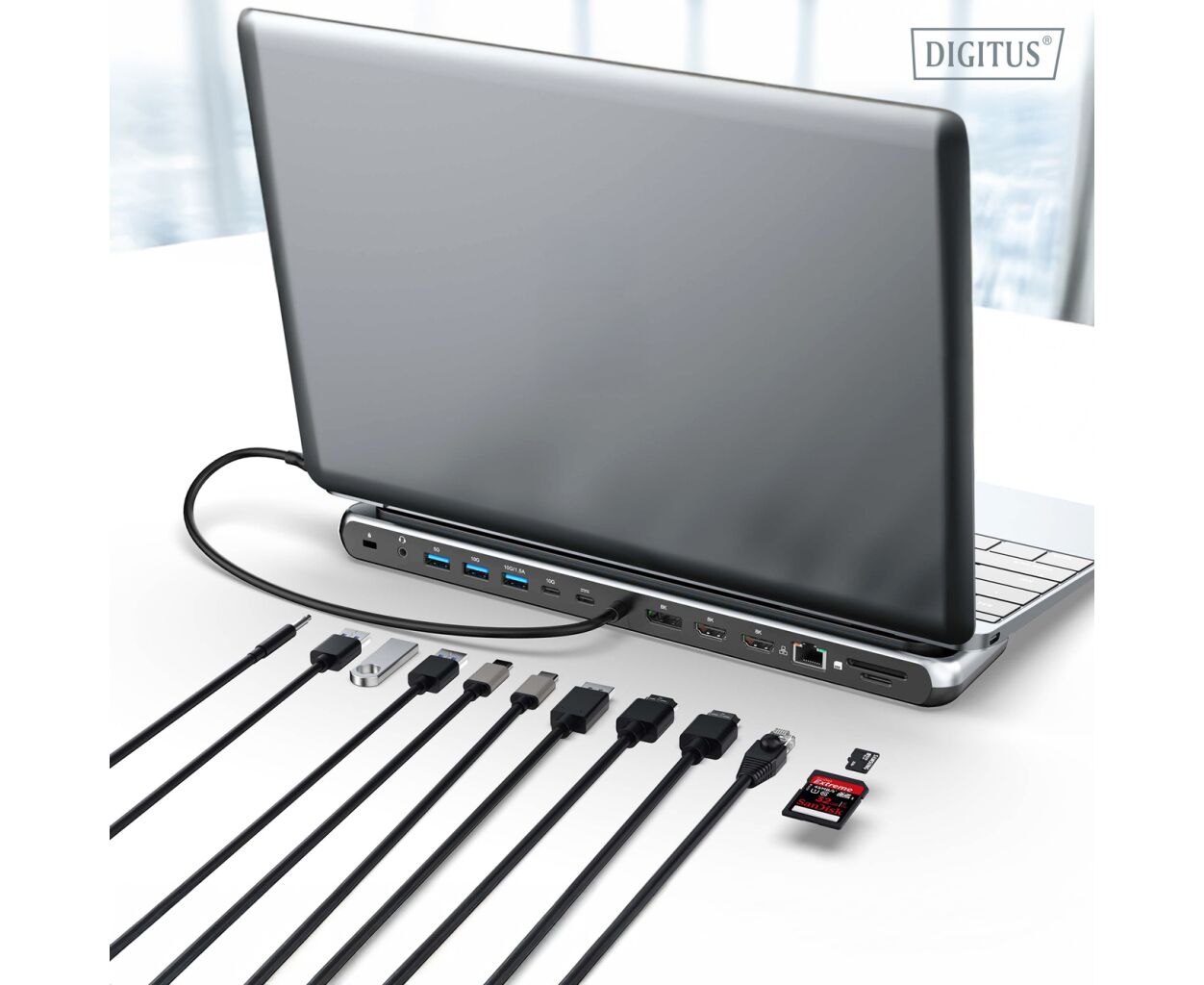 Порт-реплікатор Digitus USB-C > 2xHDMI/1xDP/3xUSB-A/USB-C/RJ54/PD/Audio (DA-70919)